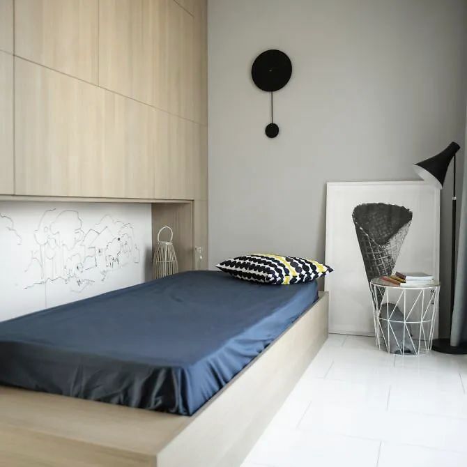 臥室空間不大,可以選擇體積小的床,放棄雙過道,靠墻擺放,這樣可以增加房間的活動面積和收納空間。