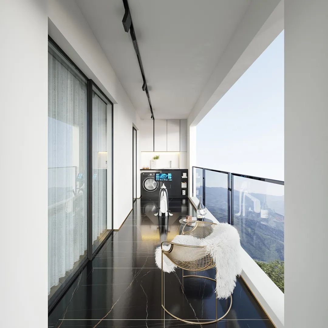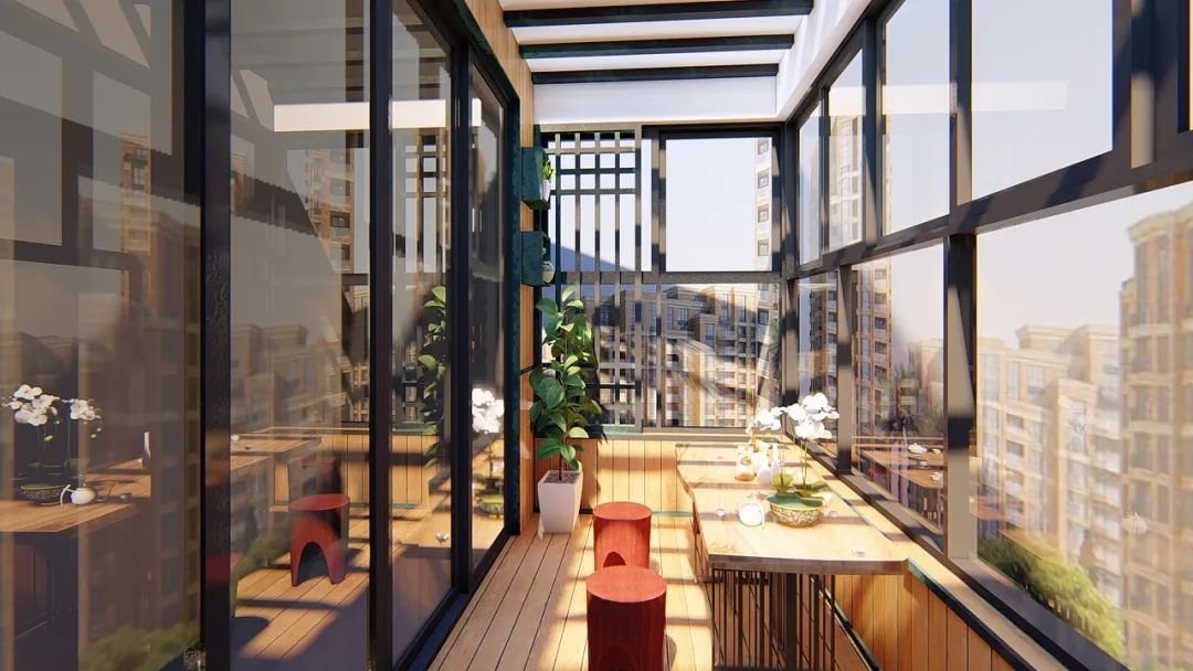 除此之外,還可以安裝鋼化玻璃對陽臺進行封閉,也就是我們常說的陽光房設計。因為玻璃的通透性強,不遮擋視線和陽光,還非常的美觀大氣,同時還具有防潮防水等一些功能。