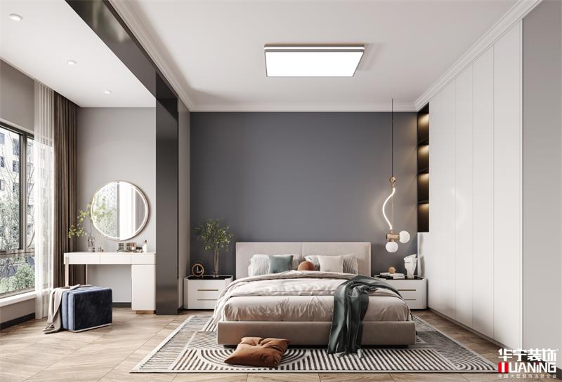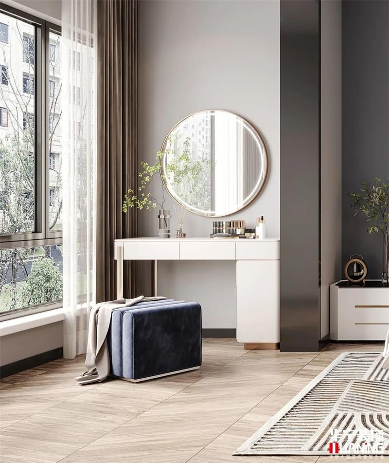 主臥的暖白色基調清雅安逸,別出心裁的床頭設計,自然且樸實,舒適生活一觸即發(fā)。精致小巧的梳妝臺也為愛美的女業(yè)主提供了極大的生活便利。早晨上班前,畫上精致妝容開啟元氣滿滿的一天。