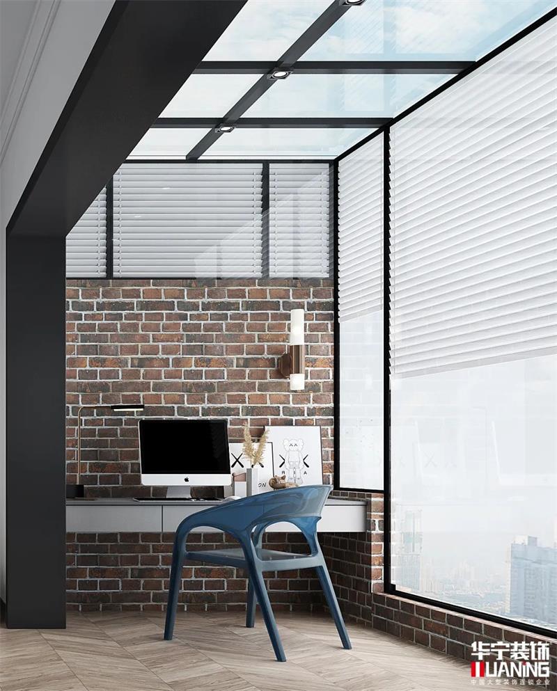 藍色的床頭背景輔,獨立分割出來的學習空間,為空間帶來趣味一筆,落地窗和天窗的美景使人心曠神怡。