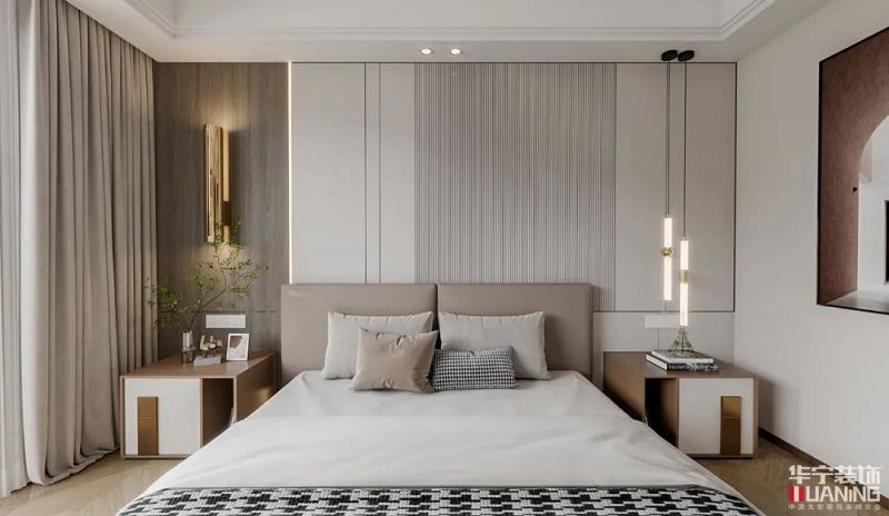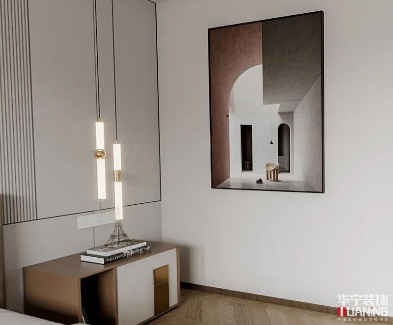 主臥的材質(zhì)細節(jié),從造型獨特的燈具,到藝術(shù)畫作的甄選,每一個細微之處都盡顯主人對于空間品質(zhì)與格調(diào)的追求,塑造出當(dāng)代精英人群所向往的生活方式