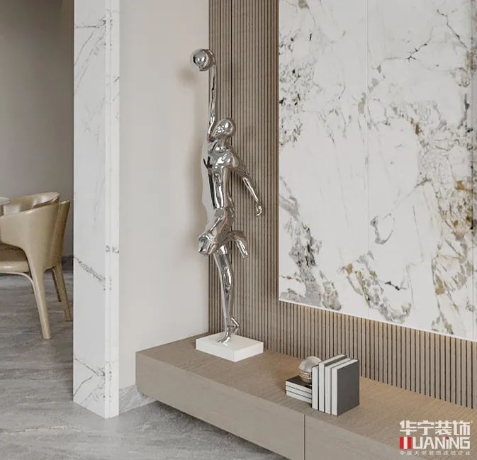 設(shè)計師通過對使用者在空間中互動關(guān)系的細致設(shè)想,反復(fù)推敲布局,再把陳設(shè)元素中的材質(zhì)、紋理、色彩交織碰撞,最終營造了空間豐富的視覺層次效果。