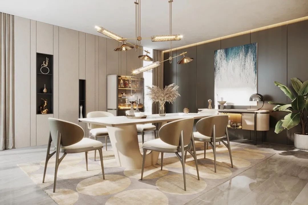 3)餐廳餐邊柜。餐邊柜是用來緩解廚房和餐廳收納壓力的一個(gè)設(shè)計(jì),深受現(xiàn)代年輕人群的歡迎。