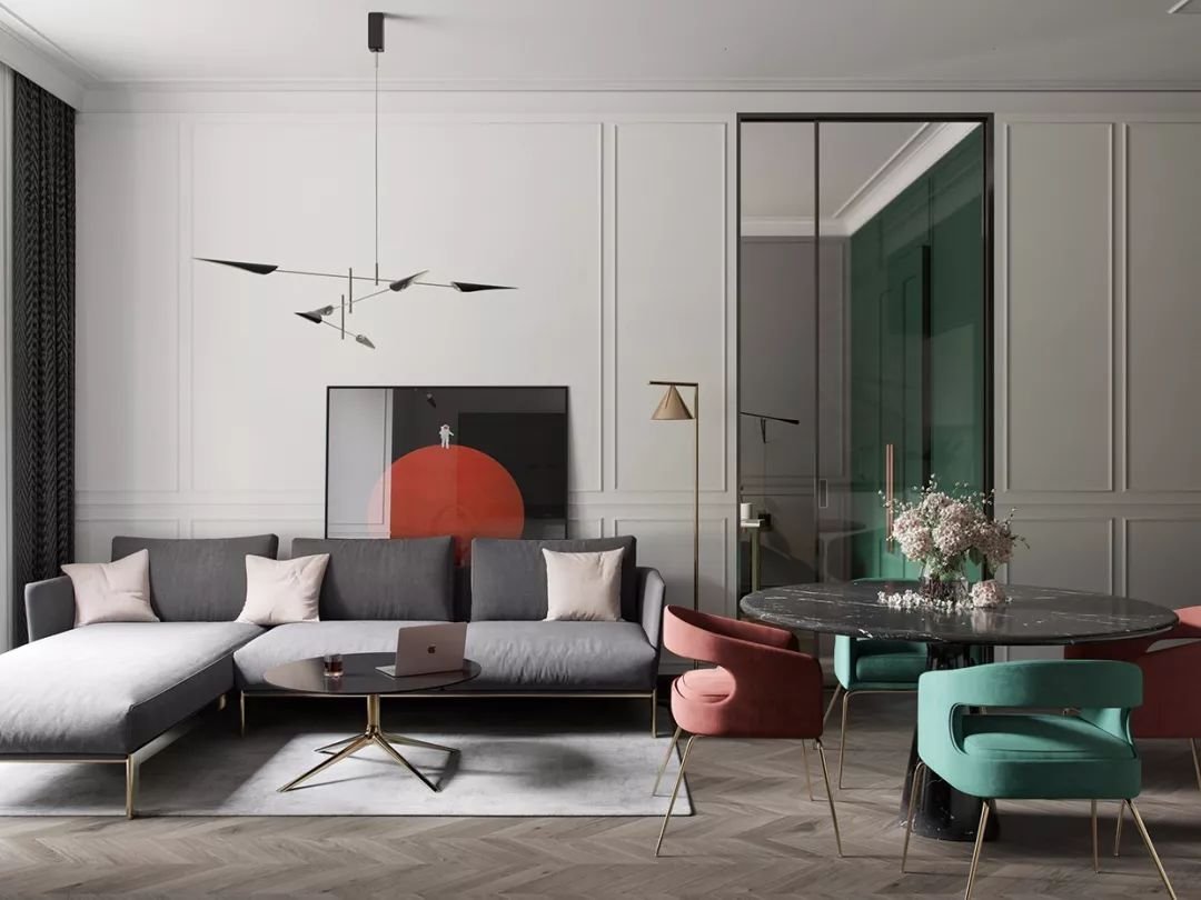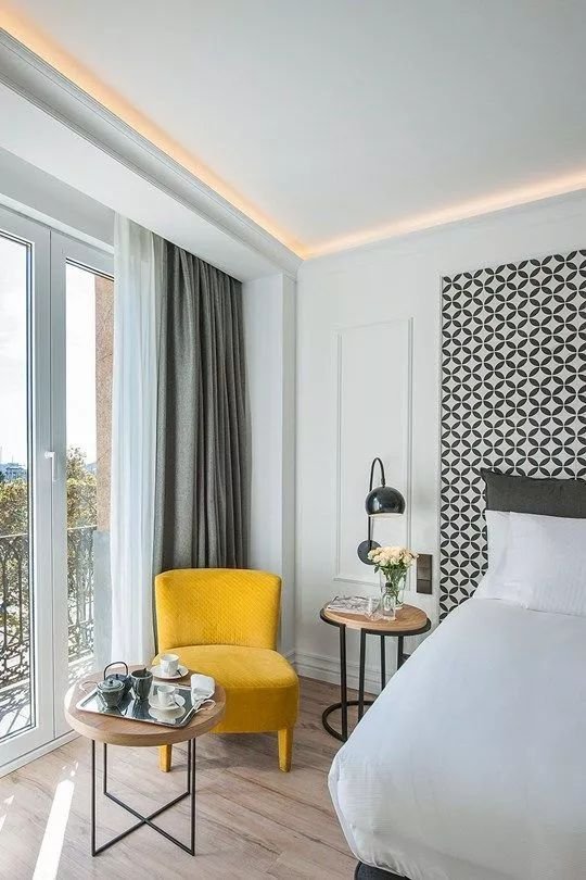 兩個面積相同的空間,亮色顯得寬大,暗色顯得狹小。運用這個原理,可以對室內(nèi)幾個面進行明暗對比來擴展空間。室內(nèi)各個界面配色的明暗、輕重不同,會對室內(nèi)空間擴展產(chǎn)生重要作用。