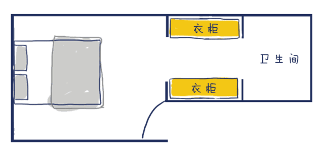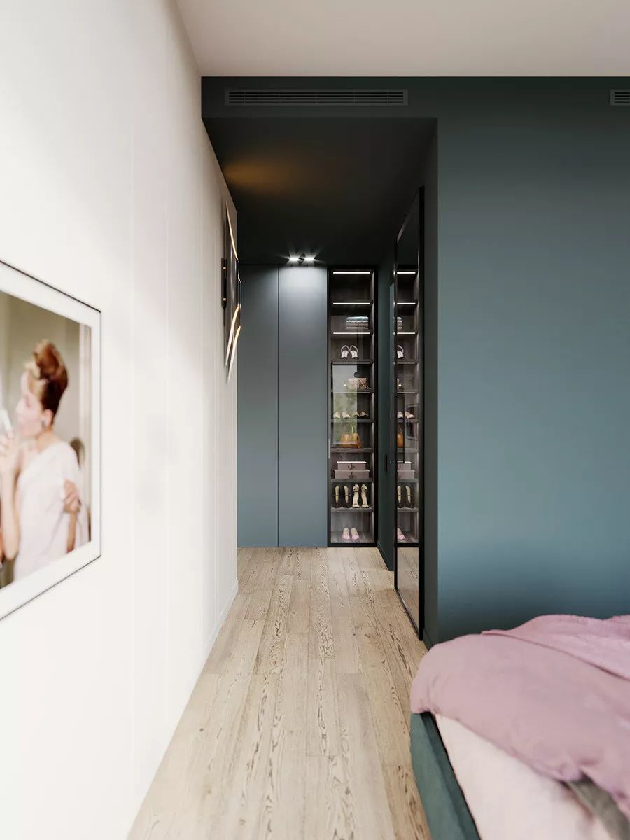 有些方形比較特殊,進入房間后會有一段走廊。將臥室門口的過道利用起來,每次進入房間,都會經(jīng)過自己美美的衣櫥。