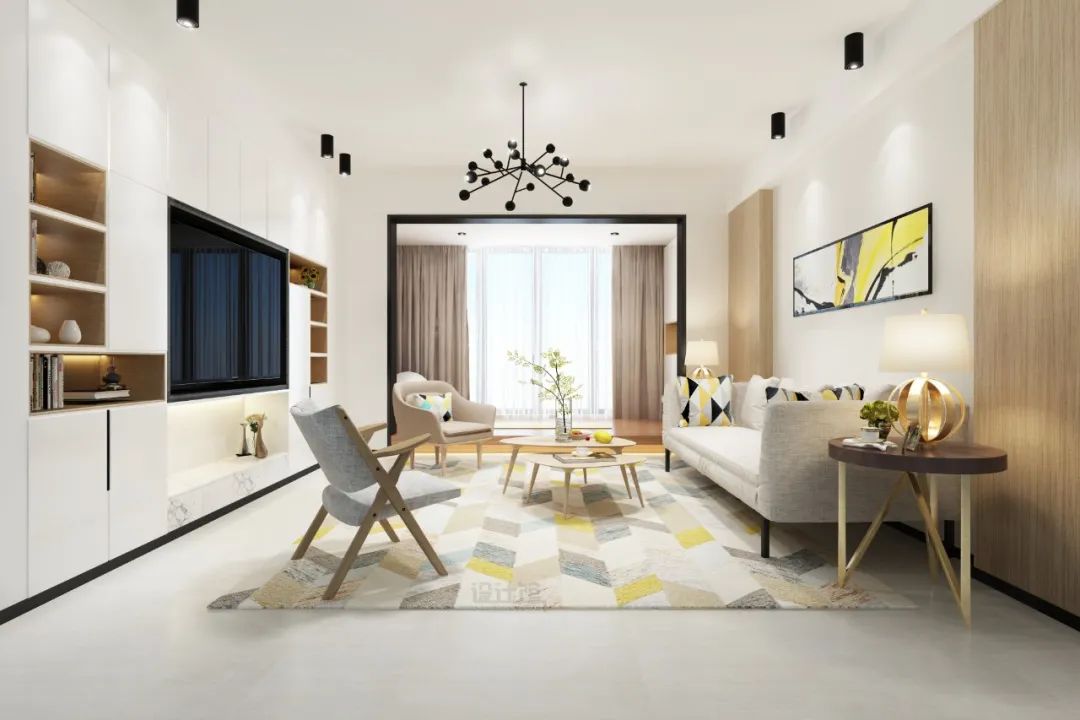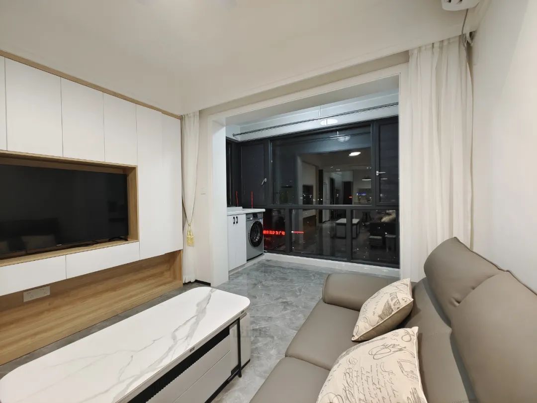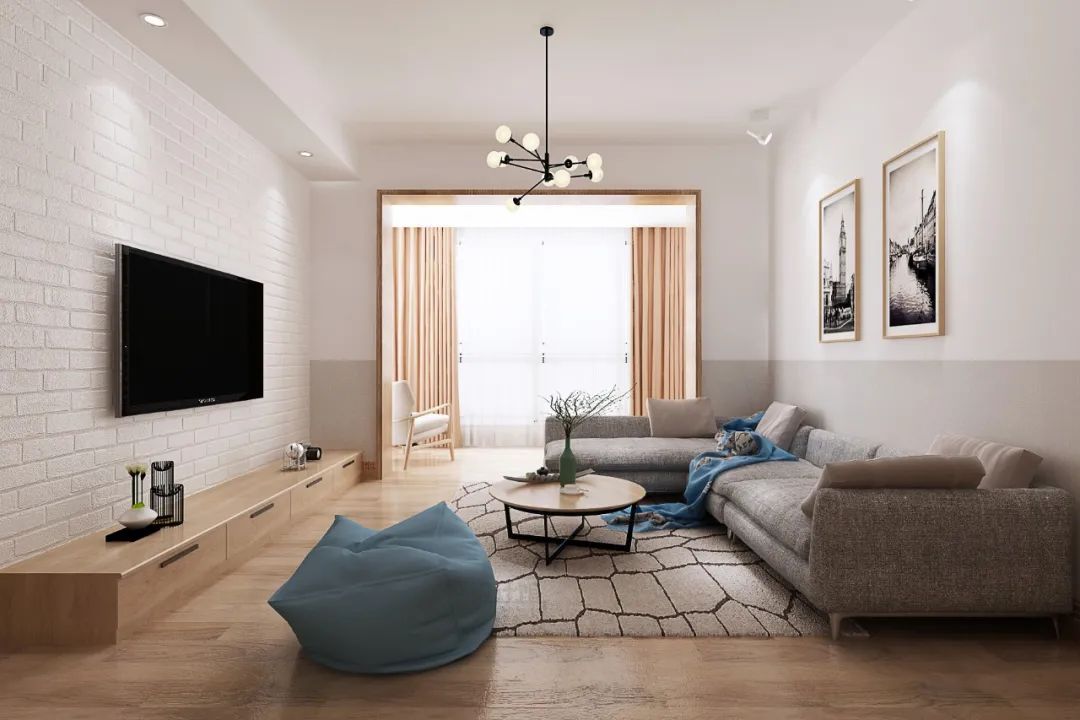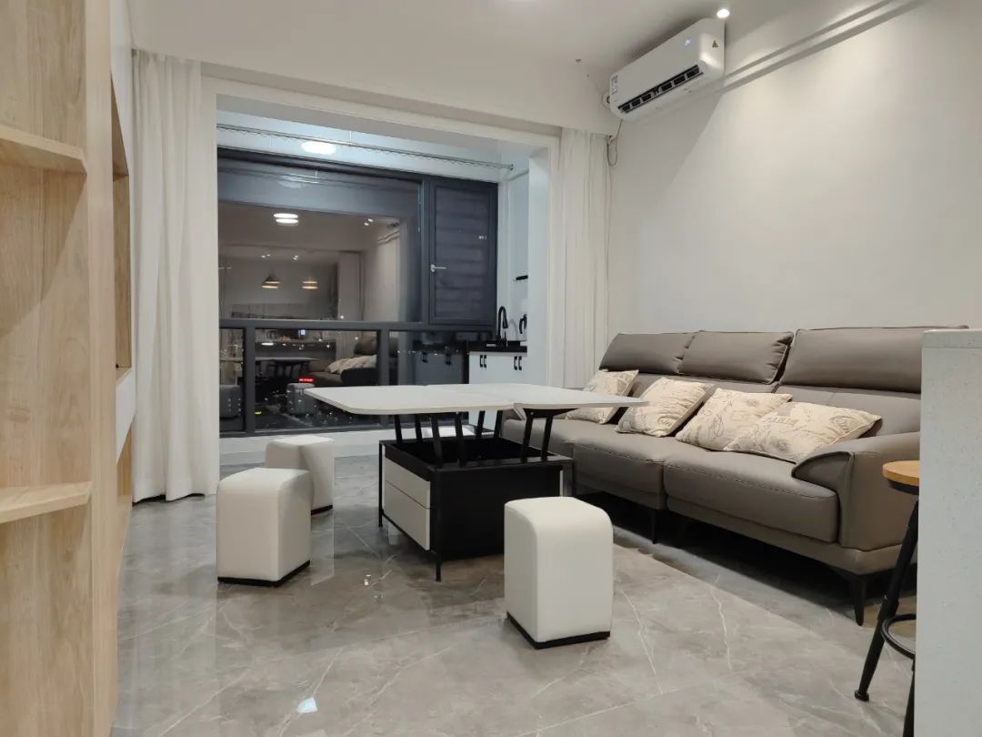 把客廳與陽(yáng)臺(tái)打通做成一個(gè)開放式的大空間,相比常規(guī)的“客廳--推拉門-陽(yáng)臺(tái)”布局,有著更寬敞的空間感、更明亮的采光效果。