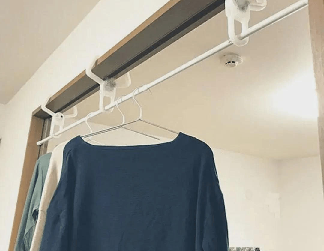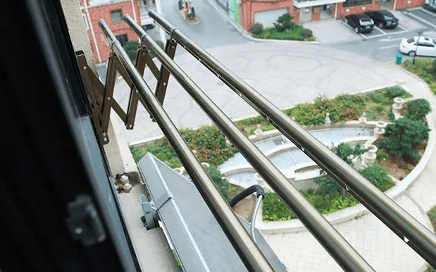 國外一些家庭會采用這種方式晾曬衣服,主要利用的是客廳和陽臺之間的陽臺門洞,在上面安裝一個晾衣桿來晾曬衣服。