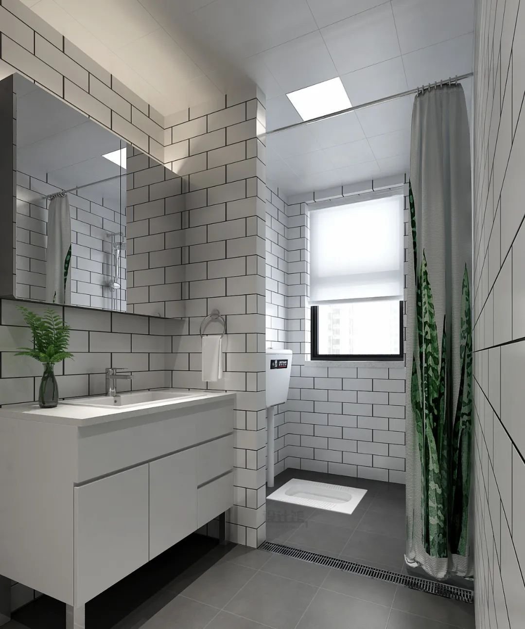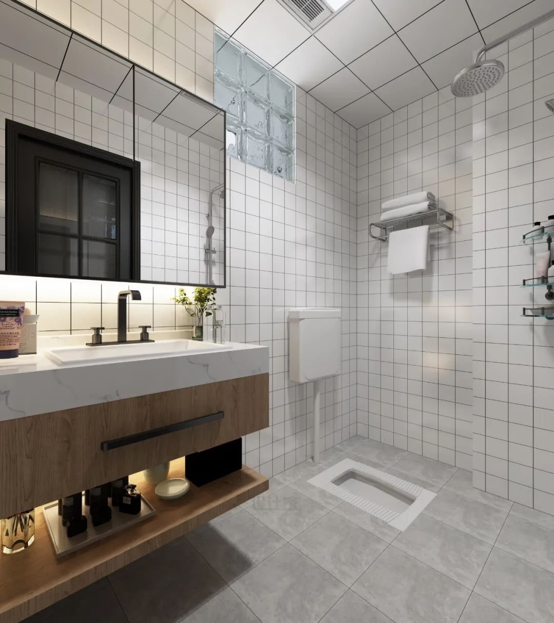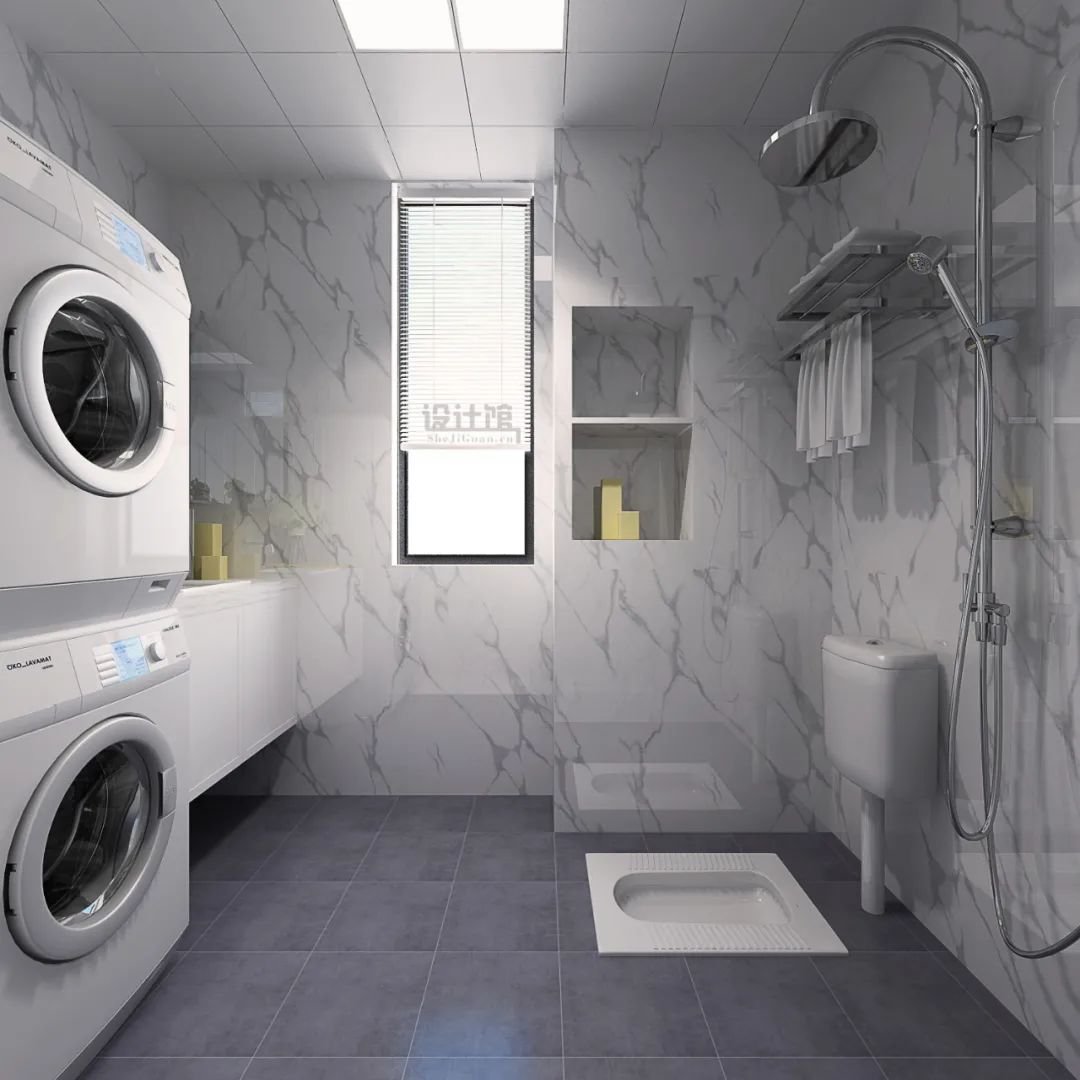 ▲蹲坑可以與淋浴區(qū)放在一起,相對(duì)更省空間。
