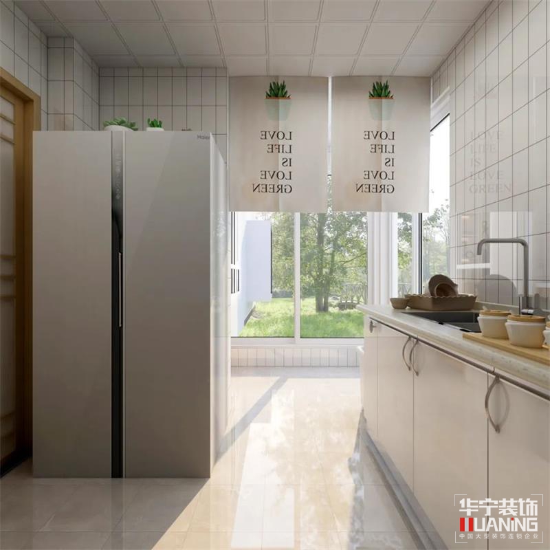 生活陽(yáng)臺(tái)通透的玻璃材質(zhì)將外部采光很好地引入室內(nèi),在視覺(jué)上緩解過(guò)度飽和的壓抑感,讓不大的廚房空間溫馨感十足。