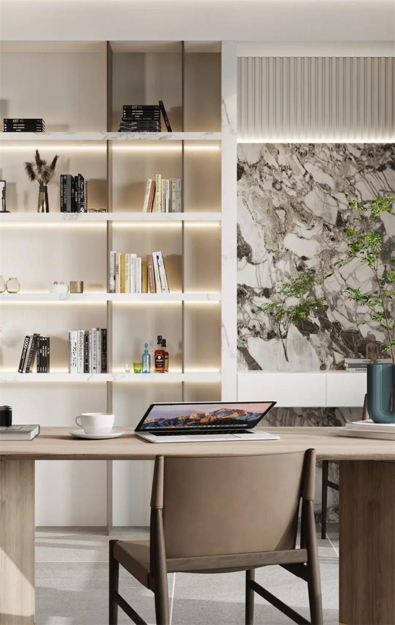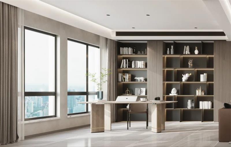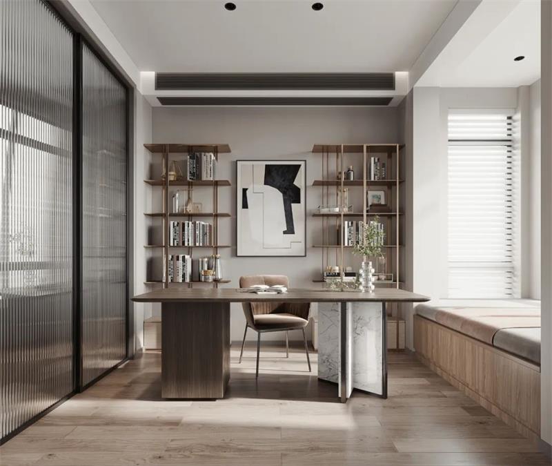 對于書房的設(shè)計(jì)與布置,重點(diǎn)都不在于空間的大小,而是“宜簡不宜繁”的布置思路,令人身心舒暢,營造雅致的讀書學(xué)習(xí)氛圍。