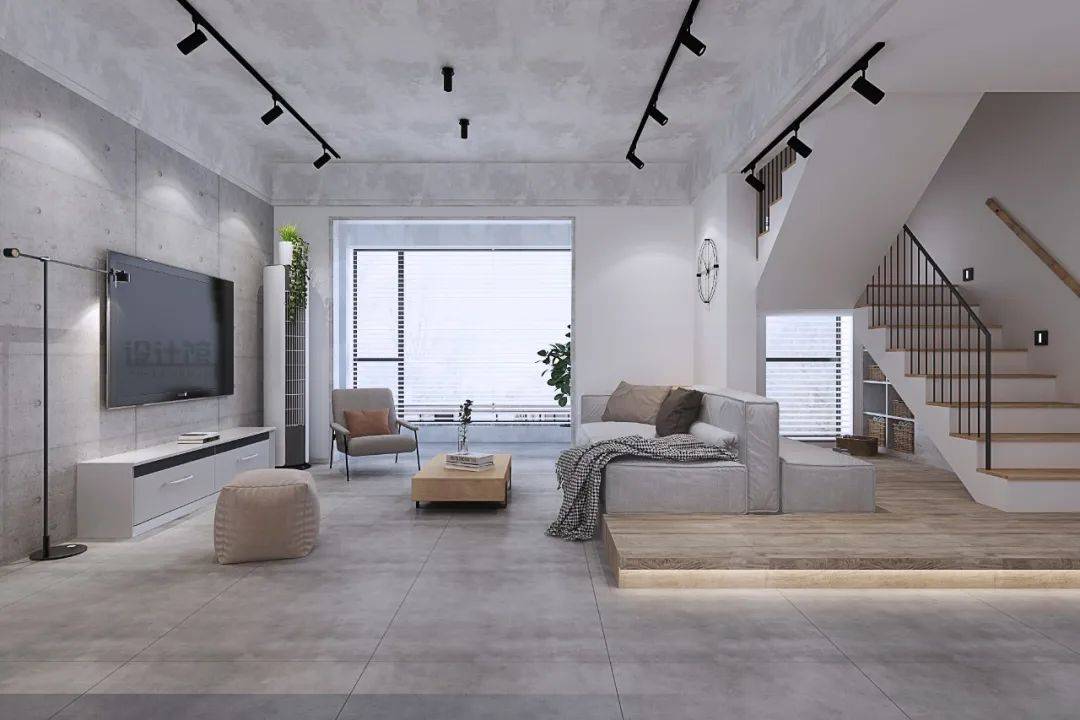 ▲工業(yè)風(fēng)的設(shè)計(jì),天花可以刷成灰色或黑色。