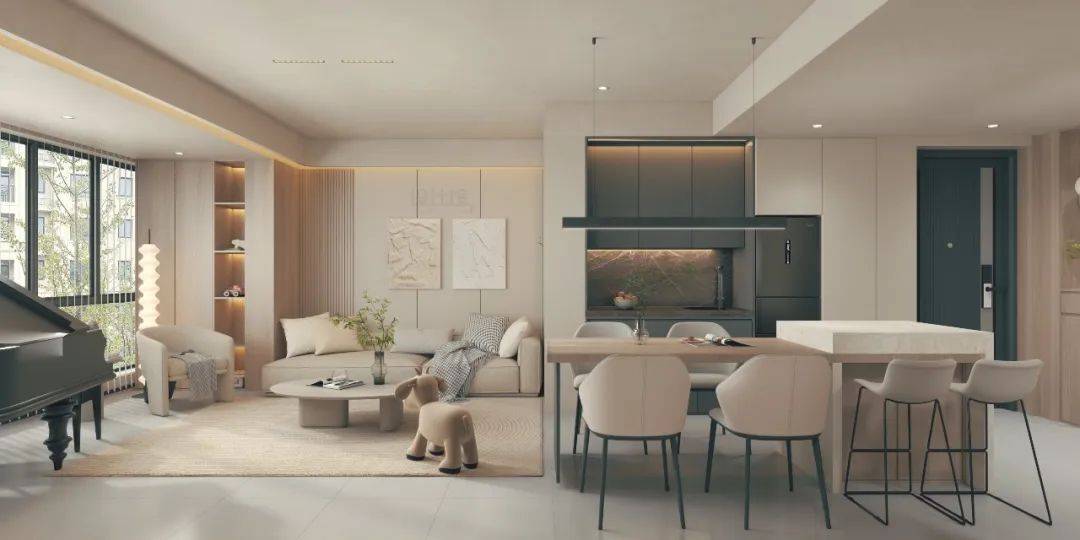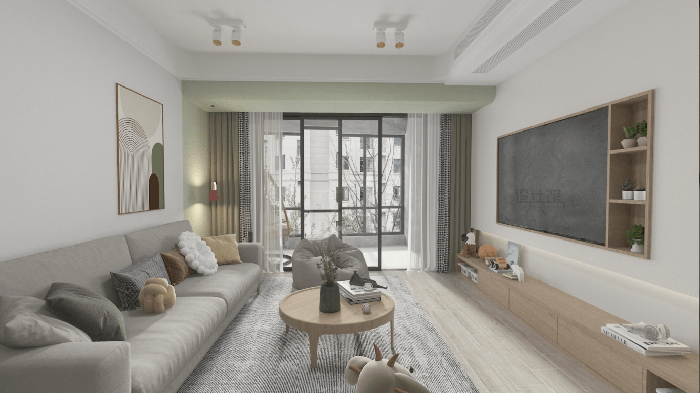 墻面刷的是淺咖色、米白色等淺色系的,可以把墻面的顏色延伸到天花板上去,讓天花與墻面刷成統(tǒng)一的淺色,這樣哪怕天花有顏色也不會(huì)令人壓抑,并且還會(huì)讓空間顯得更加溫馨舒適有設(shè)計(jì)感。