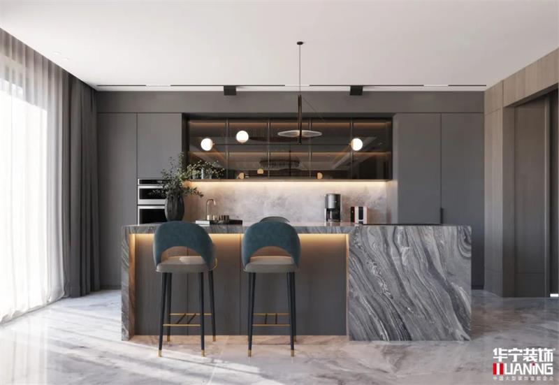 現(xiàn)在的年輕人喜歡這種現(xiàn)代化的生活方式,吧臺設(shè)計使得整體廚房很有味道,并且很輕松愜意。而且吧臺還能當(dāng)備餐桌,一舉兩得。