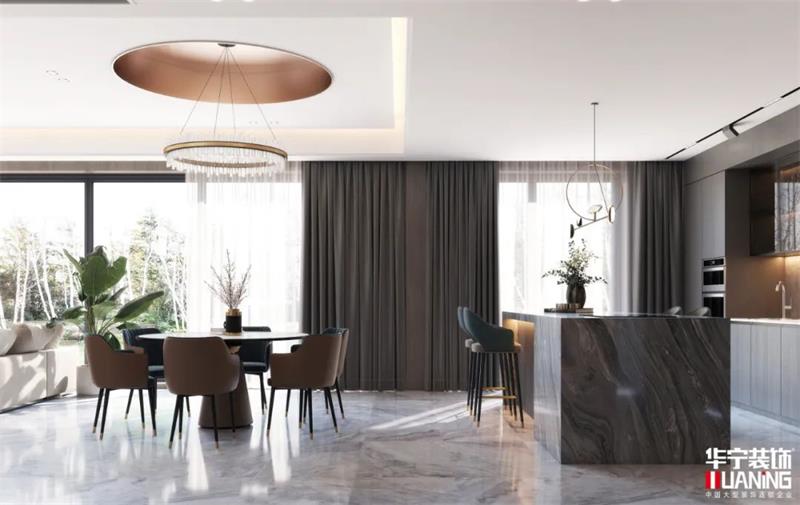 玻璃墻顏值很高,裝飾性強(qiáng),讓人聯(lián)想到漂亮的溫室花房,即使坐在客餐廳看電視,也能欣賞到家人做飯的身影,非常浪漫。