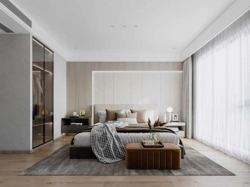 家具與床應(yīng)至少相距70厘米,便于走動。另外,家具陳設(shè)應(yīng)盡量簡潔、實用。