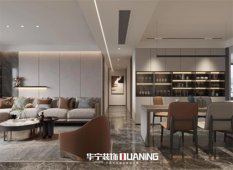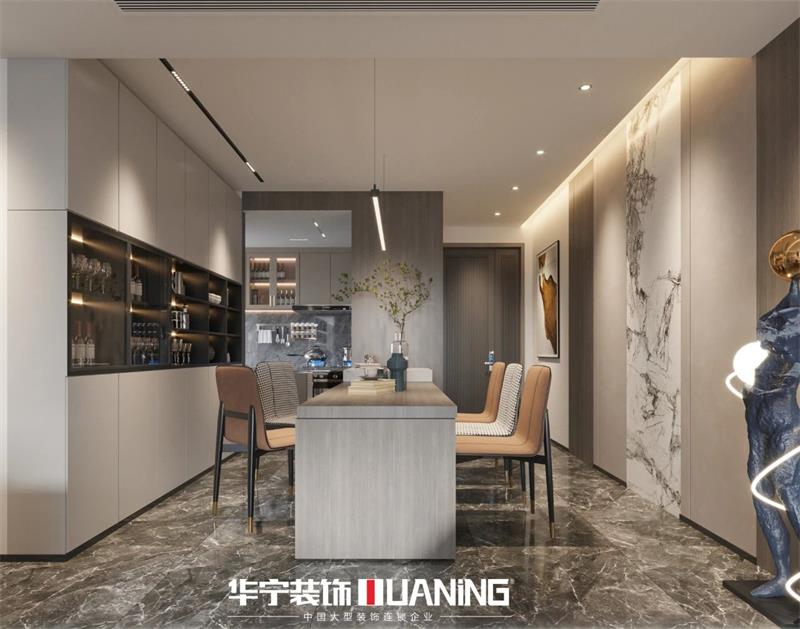 開放式餐廳,巖板的餐臺及小擺件,也平添了美食意趣。水吧白色大理石臺面,深色巖板餐桌和皮質(zhì)座椅,辟出一方小酌怡情的天地,約上三五好友相聚,沐浴陽光,開懷暢談,把酒言歡。居住者本身對于空間風(fēng)格的喜好,也將藝術(shù)品味以及生活點滴融入設(shè)計之中,再搭配各式材料以及利落的造型線條。