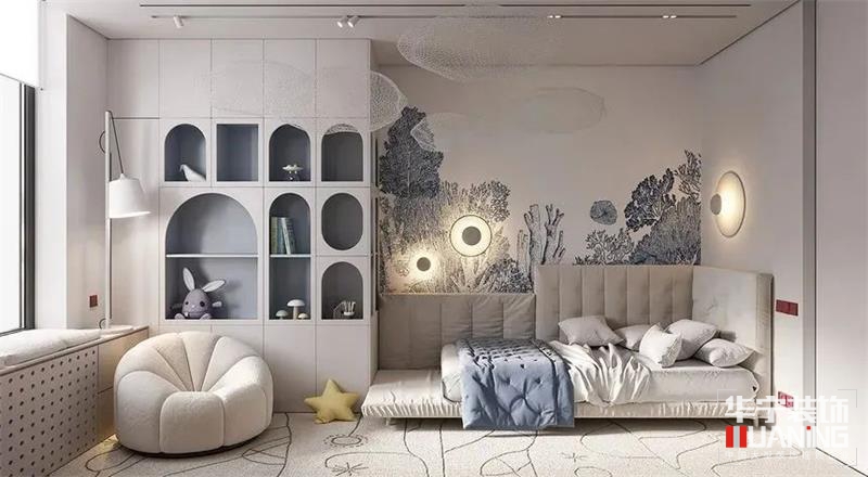 兒童房除了安全舒適的睡眠區(qū),還需要有集中精神的學習區(qū)、用來釋放天性的游戲區(qū)以及收納玩具衣物的儲物區(qū)。