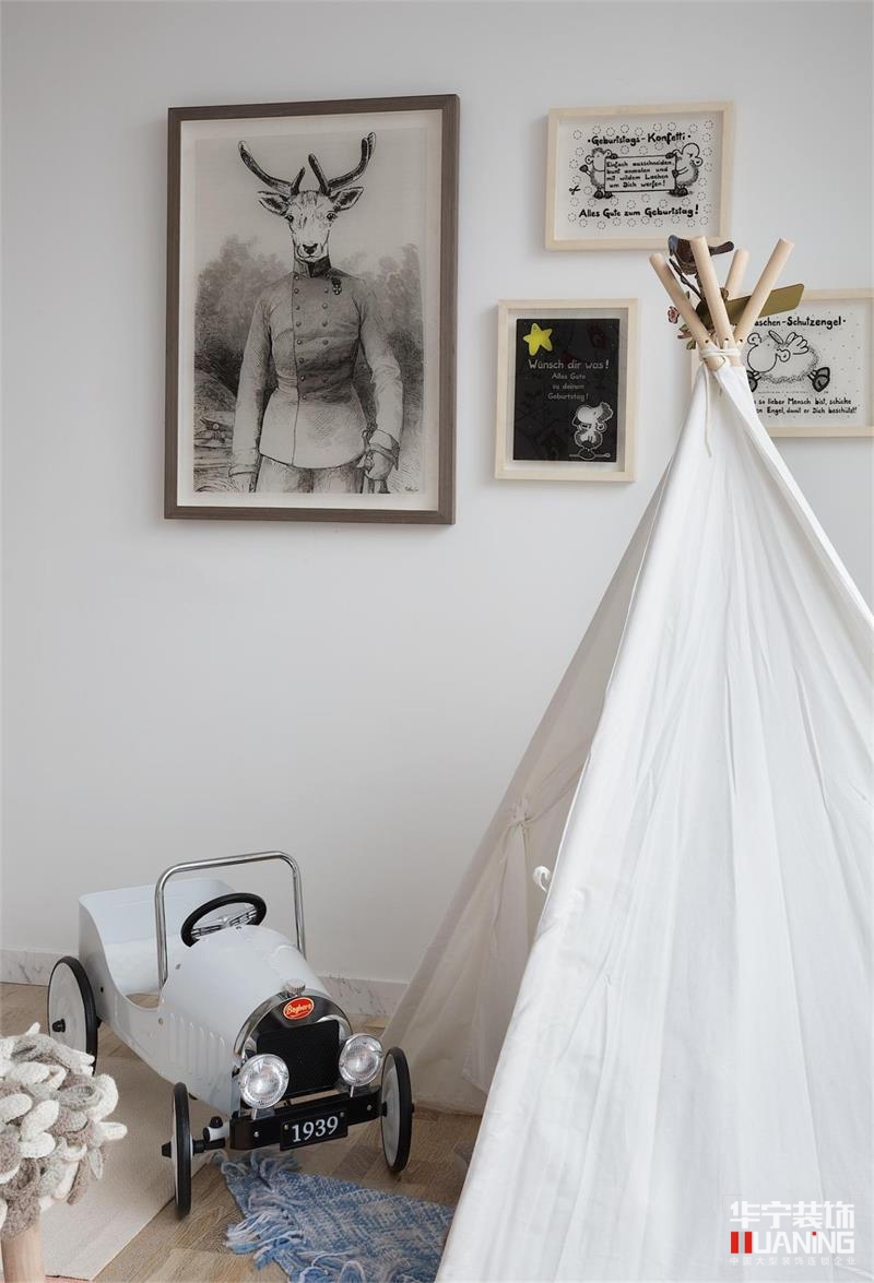 在空間允許的情況下,滿足孩子活潑好動的天性,在兒童房留有盡可能寬敞的活動空間。兒童天性就是貪玩好動,對周圍一切都有好奇心。在設計一切之前都考慮貪玩的天性,這是兒童房很重要的一個原則。