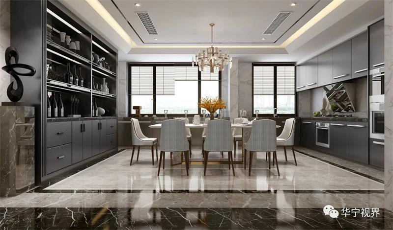 開放式廚房在打通客廳與餐廳的區(qū)域后,空出的區(qū)域就可以用來做一個(gè)中島臺(tái)。島臺(tái)柜體可結(jié)合設(shè)計(jì)紅酒架、收納柜等,增加更多儲(chǔ)物空間;臺(tái)面可用于備餐和就餐,集廚房和餐廳功能于一體,提高空間利用率。另外,這里還可以是一個(gè)家居版下午茶餐廳,周末的午后,一杯茶、一份簡(jiǎn)餐,在這里處理緊急的工作需求也能讓人心生愉悅。