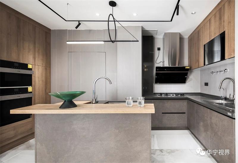 開放式的廚房相較于傳統(tǒng)廚房而言,沒有了墻體的遮擋,空間開闊,在視覺上顯得更寬敞明亮。