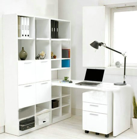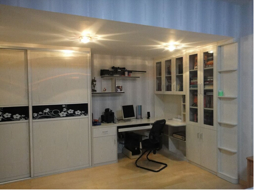 3、若是轉(zhuǎn)角的一體書桌書柜組合設(shè)計(jì),雖然占據(jù)一些空間,確多了一點(diǎn)柔和,整齊柜格相搭配,獨(dú)具特色。