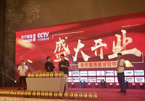 在慶典進(jìn)行至高潮時,煙臺分公司同事邀請集團(tuán)總部領(lǐng)導(dǎo)及其他領(lǐng)導(dǎo)嘉賓一同為煙臺分公司進(jìn)行啟動儀式。浩瀚的星辰匯聚至中心一點(diǎn),也象征著華寧裝飾煙臺公司為實(shí)現(xiàn)核心裝企目標(biāo)的美好愿望。