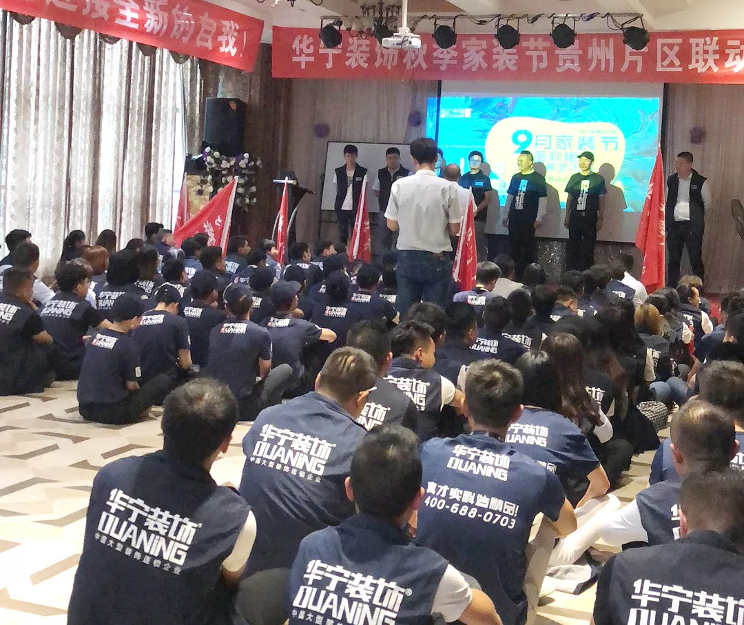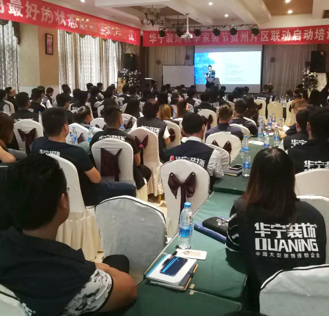 啟動會議上,華寧裝飾集團總部羅總首先代表集團總部與各分公司家人給予親切問候,同時也充分肯定積極配合總部工作的各位家人,強調(diào)了做活動的意義,做活動就是讓自己的付出不付諸東流,為的是收獲,為的是讓努力的人更有結果!羅總從活動狀態(tài)作為切入點,幫助各分公司進行狀態(tài)調(diào)整,以激發(fā)家人們用更加飽滿的激情迎接本次挑戰(zhàn)。兩天一夜的培訓里,羅總為家人們講解了家裝營銷的目的、十大引流渠道、家裝區(qū)域市場聚焦等方式方法,給貴州片區(qū)的家人們帶來了一場生動活潑,氣氛活躍的視聽盛宴。