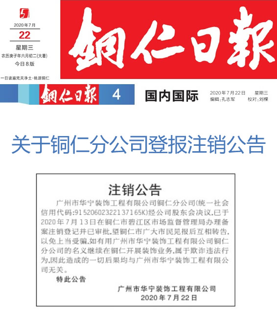 注銷公告(銅仁)(南沙)(厚街)(贛州)