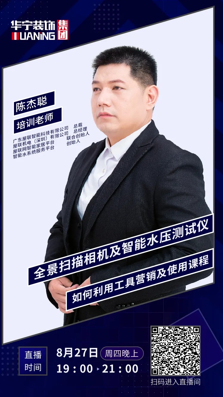 兩個小時的培訓(xùn)干貨滿滿,培訓(xùn)講師陳總傾囊相授,內(nèi)容涵蓋全景掃描相機及智能水壓測試儀的應(yīng)用、優(yōu)勢與營銷價值等方面。時代發(fā)展日新月異,新趨勢、新業(yè)態(tài)層出不窮。華寧裝飾集團不斷探索發(fā)現(xiàn)新模式,開創(chuàng)直播培訓(xùn)為分公司營銷賦能。截至目前,華寧裝飾集團整合行業(yè)優(yōu)勢資源,舉行多場線上直播培訓(xùn),助力分公司開拓眼界,提升思維,贏戰(zhàn)簽單。