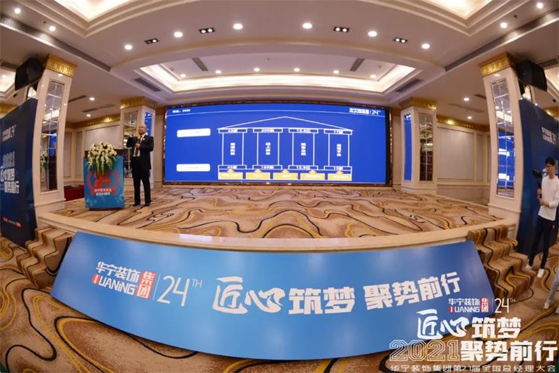 3月24-25日,為期兩天的“匠心筑夢·聚勢前行”廣東華寧裝飾集團第21屆全國總經(jīng)理大會,在集團總部拉開帷幕,也開啟了集團2021年發(fā)展的嶄新篇章。在兩天行程中,大會“以會代訓(xùn)”,從集團工作的回眸擘畫,到行業(yè)發(fā)展的風(fēng)向走勢;從卓越公司的經(jīng)驗分享,到核心競爭力的煉造養(yǎng)成;從優(yōu)秀工程的集中展示,到設(shè)計大賽的表彰頒獎,給來自全國各地的300多位分公司的總經(jīng)理,上了一堂干貨滿滿的企業(yè)管理、團隊培訓(xùn)、設(shè)計力量的培訓(xùn)課,得到分公司總經(jīng)理的高度肯定。主流媒體代表齊聚一堂,見證了這一盛事。作為華寧裝飾集團的“傳統(tǒng)節(jié)日”,全國總經(jīng)理會議已成功舉辦21屆。對舉辦總經(jīng)理會議的初衷,華寧裝飾集團董事長劉霖在接受媒體采訪時表示,首先是為了統(tǒng)一目標和行動,讓各分公司都清晰了解集團的布局戰(zhàn)略和營銷目標,緊跟集團步伐;其次是“以會代訓(xùn)”,統(tǒng)一思想,將集團發(fā)展理念傳遞出去,在加強對集團理念認同感的同時,提升團隊凝聚力;第三則是為了統(tǒng)一聲音。在新媒體時代,通過集體發(fā)聲,夯實外界對華寧品牌的信心。