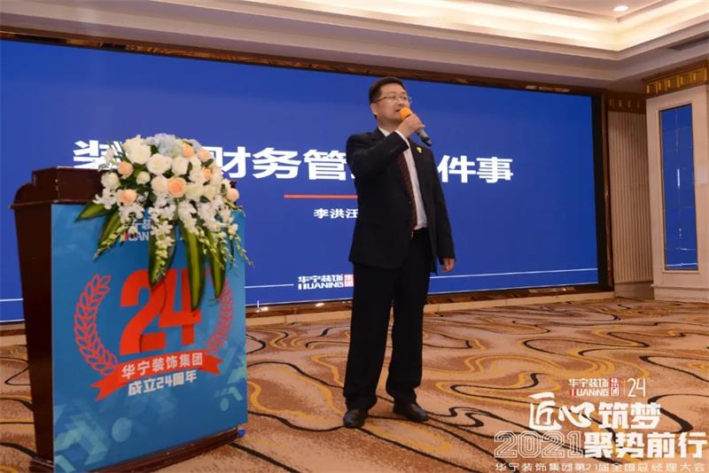 在隨后的全國總經(jīng)理大會上,廣東華寧裝飾集團副總經(jīng)理崔慶欽首先致開幕詞。隨后,劉霖以集團發(fā)展為軸線,對2020年的發(fā)展歷程和2021年的戰(zhàn)略布局進行了專題分享。