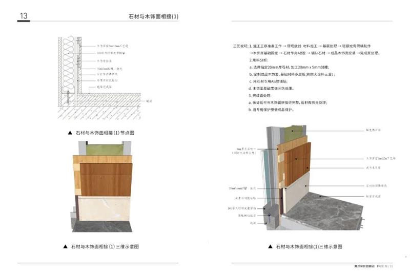 本冊(cè)是裝飾項(xiàng)目墻面收口工藝指導(dǎo)工具書(shū),系統(tǒng)介紹了室內(nèi)裝飾工程施工過(guò)程中墻面各類(lèi)收口工藝的具體施工辦法。主要通過(guò)對(duì)例如墻面石材干掛、木飾面干掛、不銹鋼收口安裝等不同材質(zhì)的安裝工藝,以及混凝土墻面、加砌塊墻面施工等不同類(lèi)型墻面施工的工藝做法進(jìn)行剖析及系統(tǒng)講解,涵蓋了空間內(nèi)大部分常用墻面施工工藝以及不同墻面材料施工的工藝節(jié)點(diǎn),利用專(zhuān)業(yè)軟件建模結(jié)合CAD深化節(jié)點(diǎn)圖紙,進(jìn)行系統(tǒng)剖析。