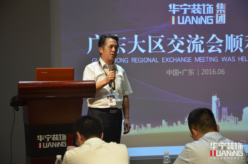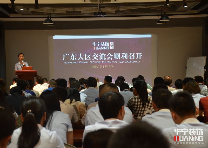 2016年6月13日,華寧裝飾集團廣東大區(qū)培訓交流會在惠州創(chuàng)意園召開,華寧裝飾集團總經(jīng)理劉霖、集團常務副總葉祥祿、客戶管理中心崔慶紅,品牌運營中心陳史科等集團總部領導與廣東大區(qū)各個分公司齊聚華寧裝飾創(chuàng)意園,此次培訓會以企業(yè)管理為主題,分別交流如何用企業(yè)的標準化管理、“狼”性團隊的打造和利用有關工具提升企業(yè)業(yè)績管理與講座。