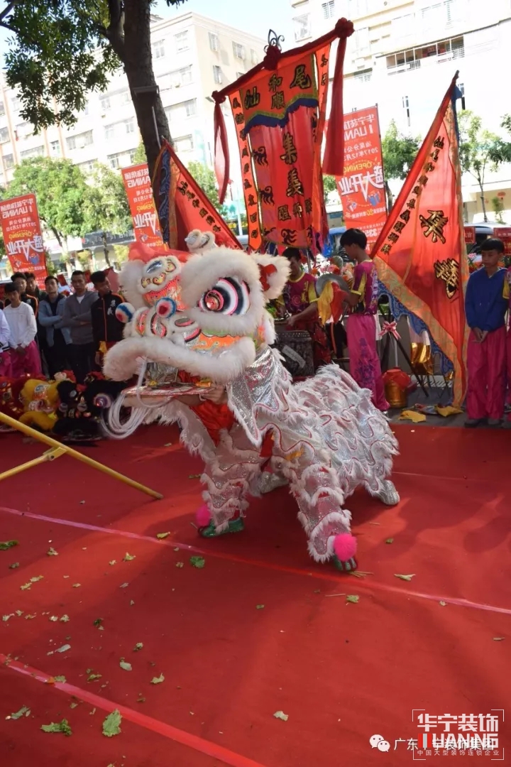 慶典開始前,粵東地區(qū)的知名醒獅隊(duì)先為現(xiàn)場觀眾帶來了一段精彩的醒獅表演,為華寧裝飾送上他們獨(dú)特的祝福,祝愿華寧裝飾汕尾分公司財(cái)源廣進(jìn),生意興??!