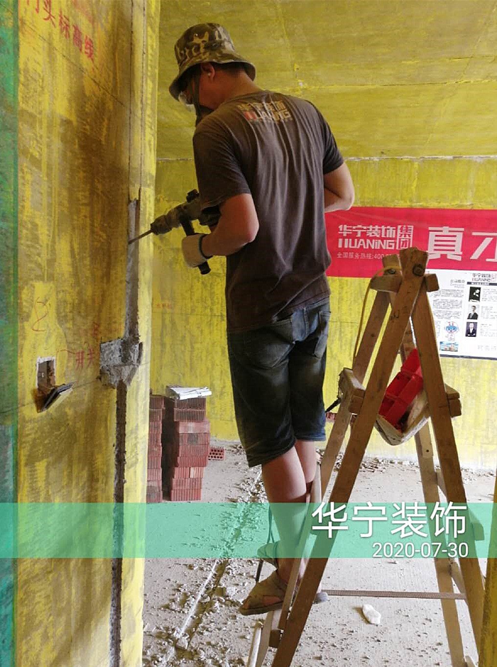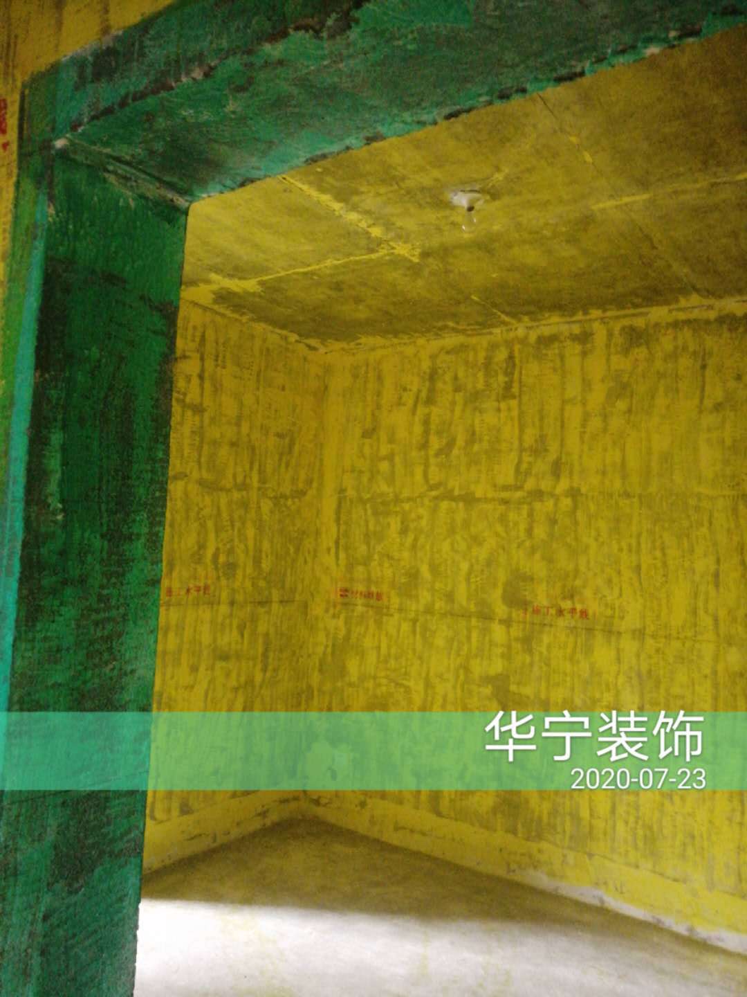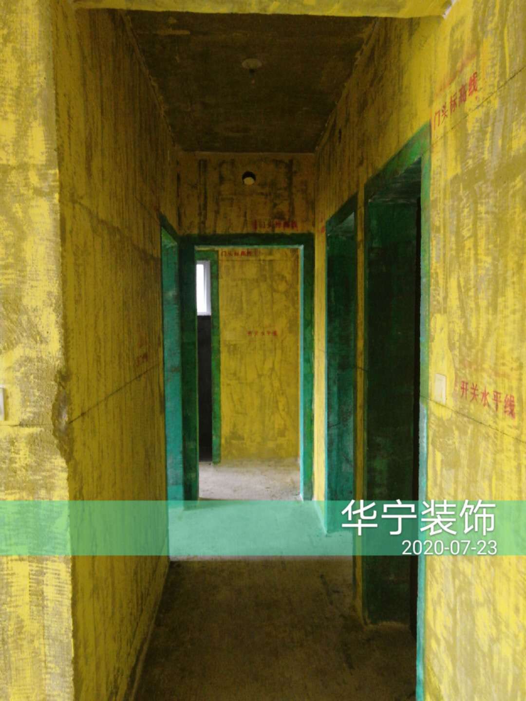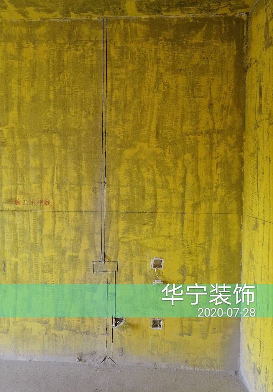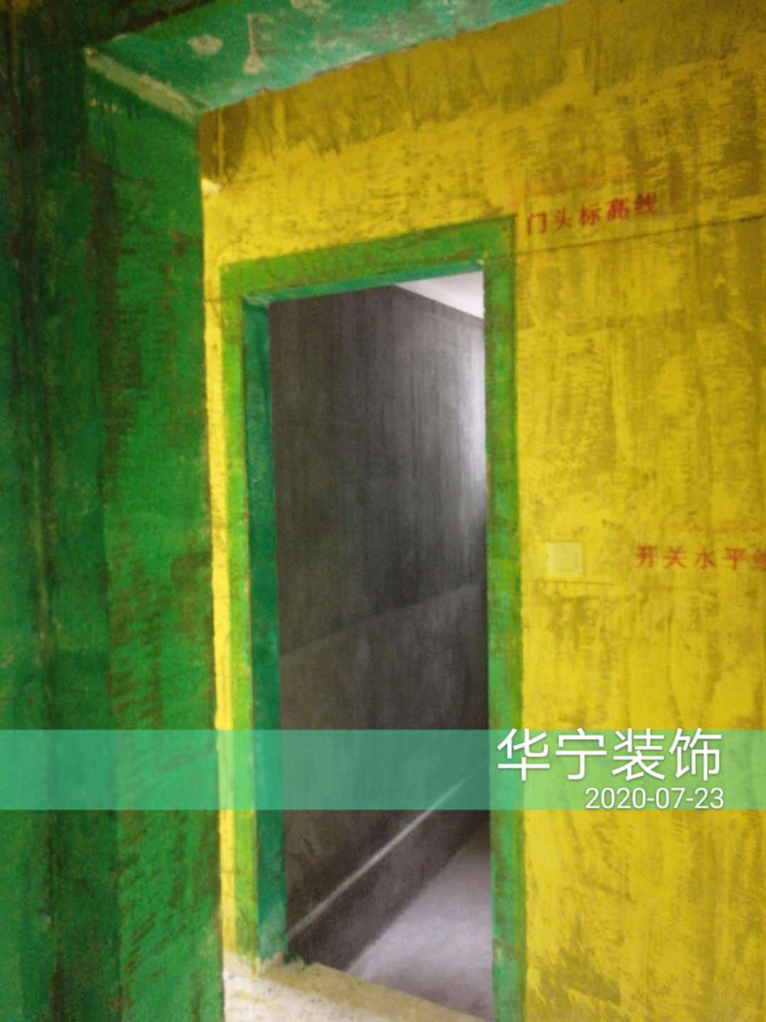 打拆改造、刷黃墻固綠門(mén)框、施工水平線及標(biāo)識(shí)