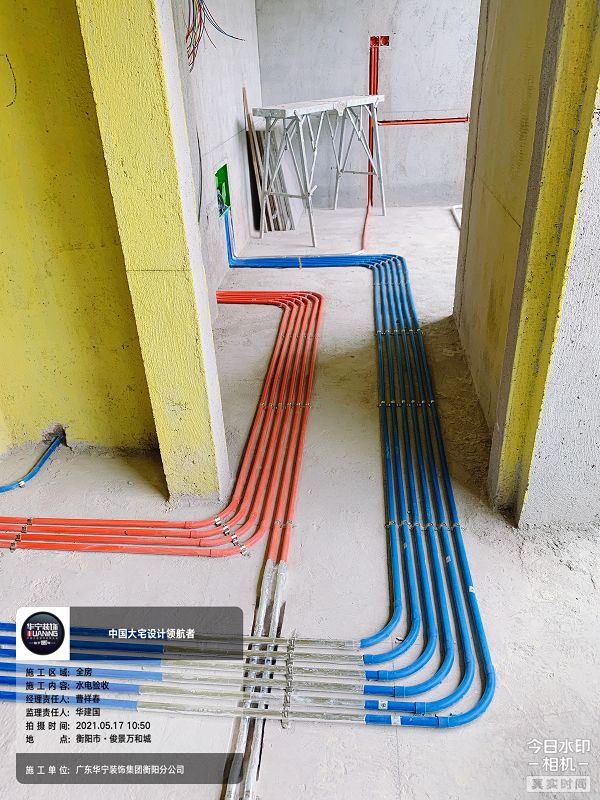 ?所有電線水管鋪設(shè)橫平豎直,管線布置規(guī)整,這是公司最基本的工藝要求。水電施工前必須彈線放樣,確定高度,具體位置。防止后期家具進(jìn)場拆改插座開關(guān)。