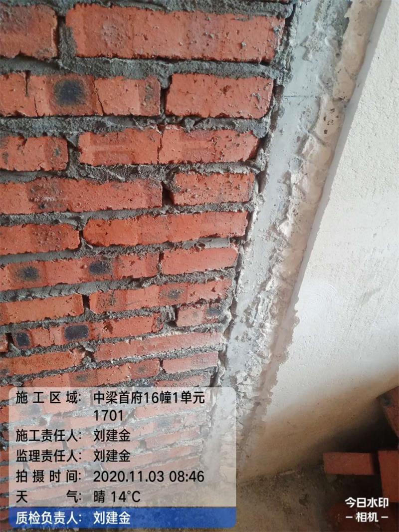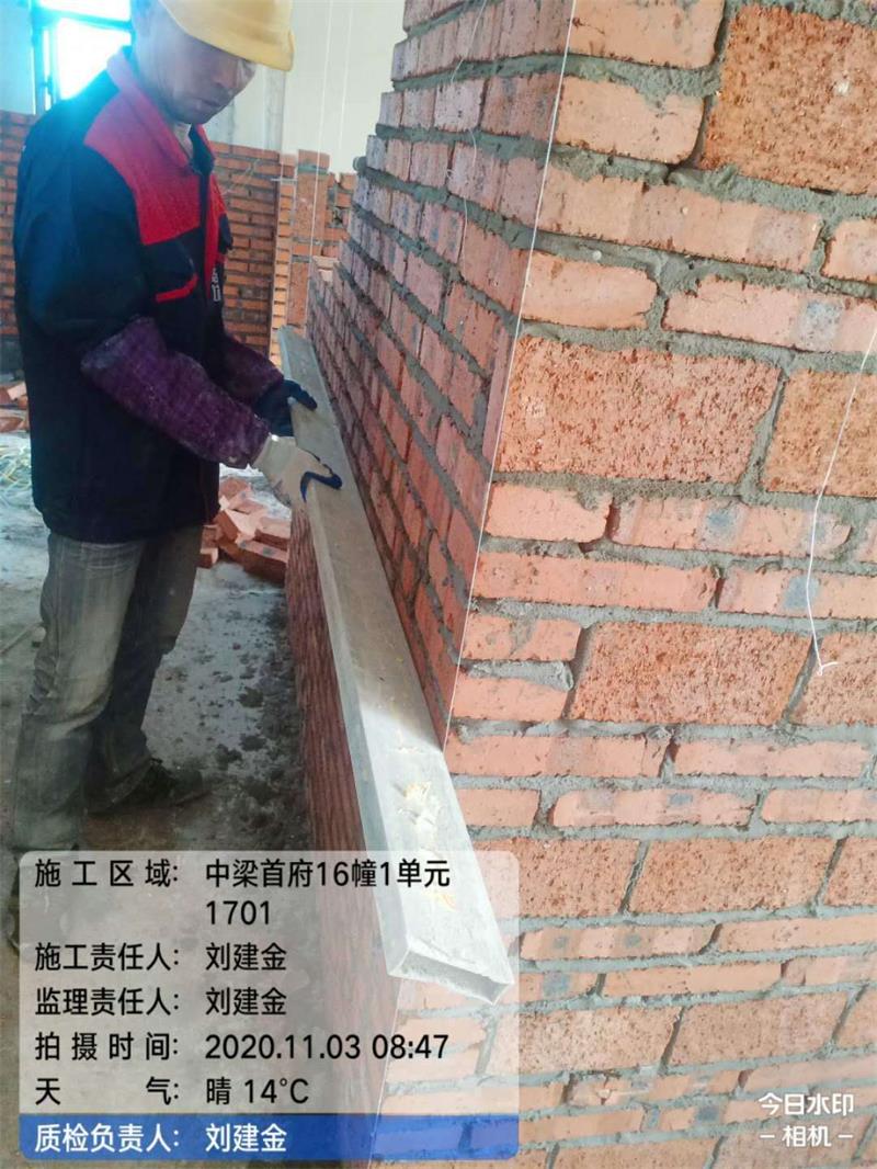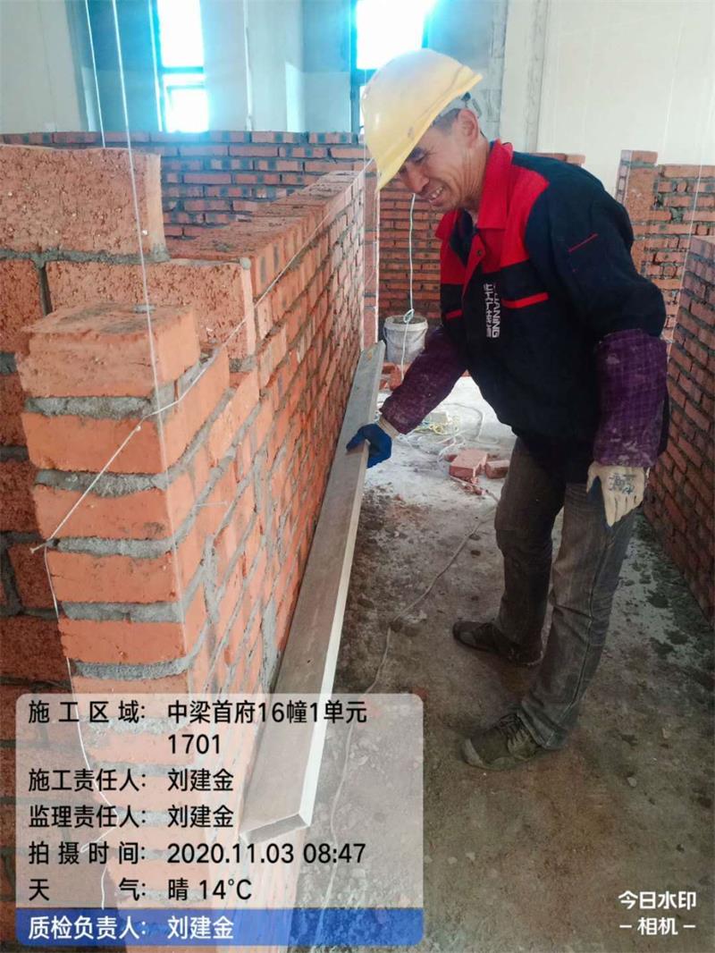 底部三層小磚,中間兩層小磚,頂部小磚斜砌,使墻體更牢固,防止下沉,砌墻砂漿飽滿,不允許有對縫,表面平整、垂直。