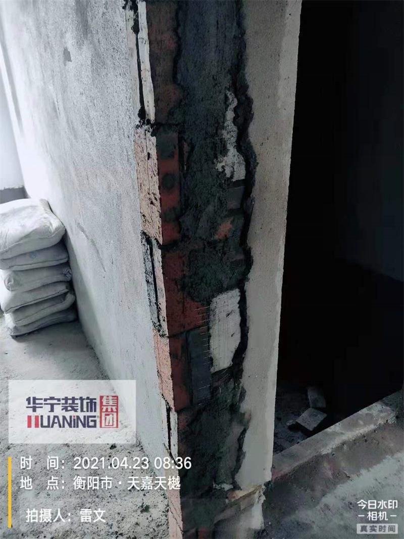 為了能夠保證新砌的墻體和原有的墻體之間緊密結(jié)合,我們在砌墻的時(shí)候,先量好每層磚的高度,在就墻面上橫向打鋼筋,然后再新砌墻體中,將鋼筋埋進(jìn)去,這樣新舊墻體之間就結(jié)合的比較緊密了。