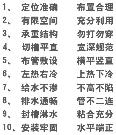 水管是家庭裝修隱蔽工程的第一步,一旦沒有做好,入住后肯定后患無窮,掘地三尺也不一定解決得了??!個(gè)中艱辛,暫且不論?,F(xiàn)在我們從施工源頭講起,只有規(guī)范施工才能從根本上解決問題!
