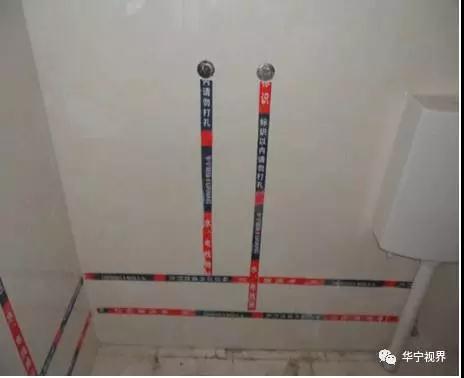 泥工鋪貼好墻磚后,水電布管位置需要粘貼“水電走向標(biāo)示”貼,預(yù)防安裝掛件時(shí)打壞管件。