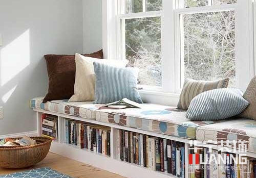飄窗作為一個不大的空間,整潔是最重要的。所以設計一個可以放置書籍和小雜物的收納角,不僅可以給飄窗增加文藝氣息,也保證了它的整潔性。