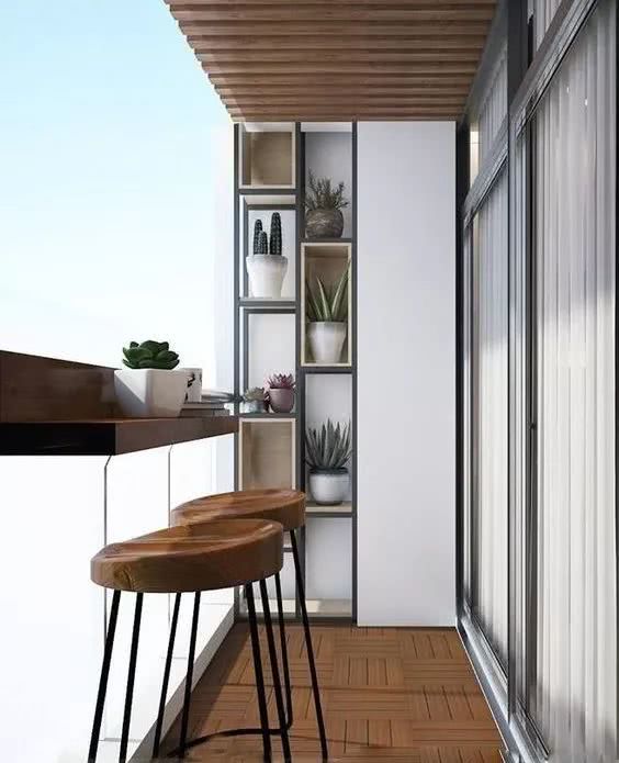 如果你家的陽臺面積不是很大,千萬不要以為他只能曬曬衣服那么簡單。臥室陽臺,可以設(shè)計成簡單的衣帽間??筒蛷d等開放式的陽臺可以設(shè)計成書房、茶室、休閑區(qū)等,彰顯一種時尚溫馨的感覺。