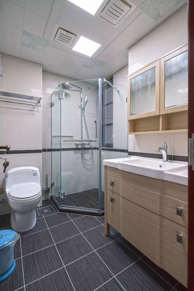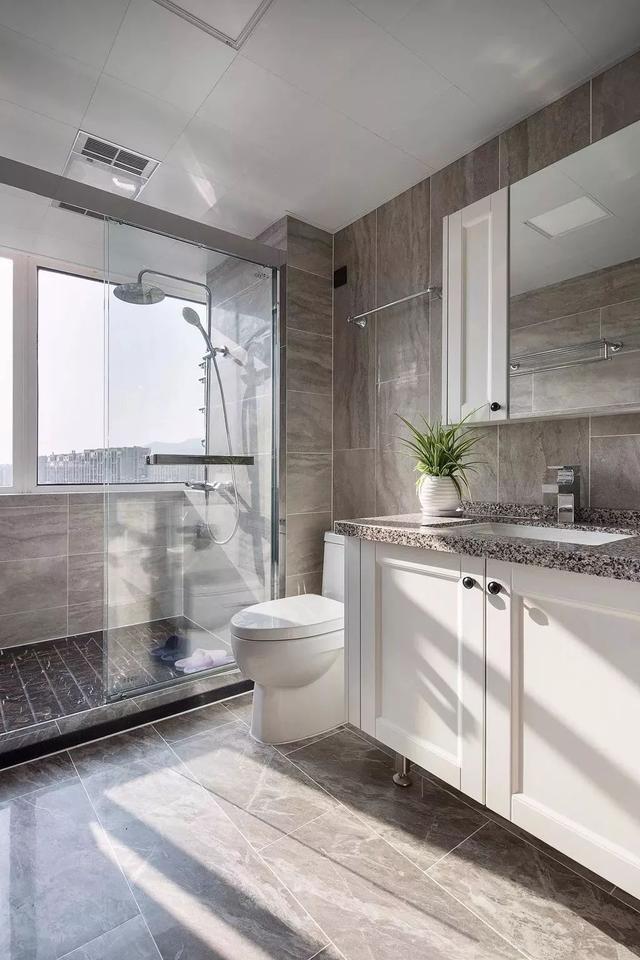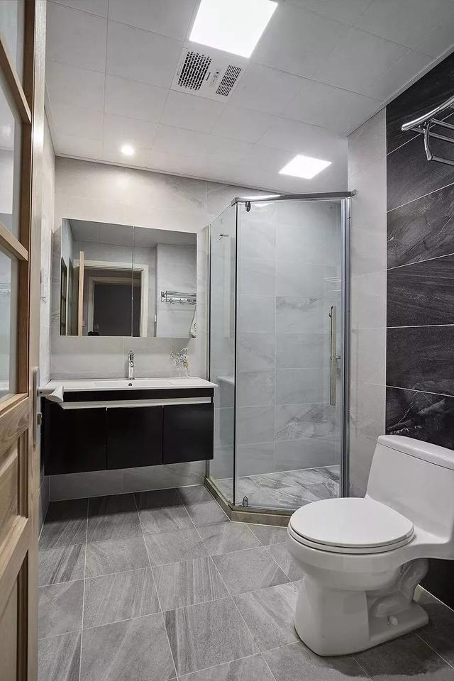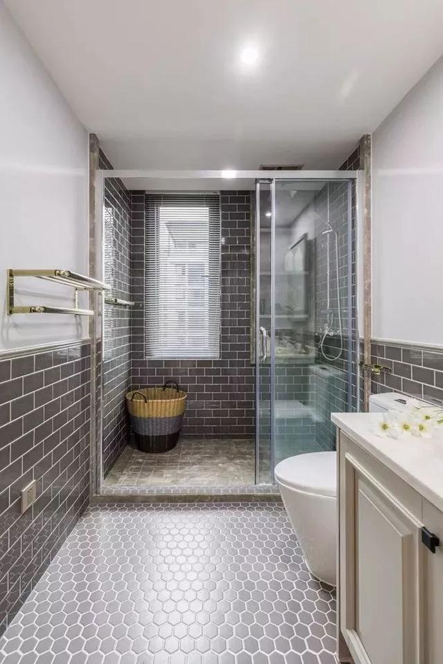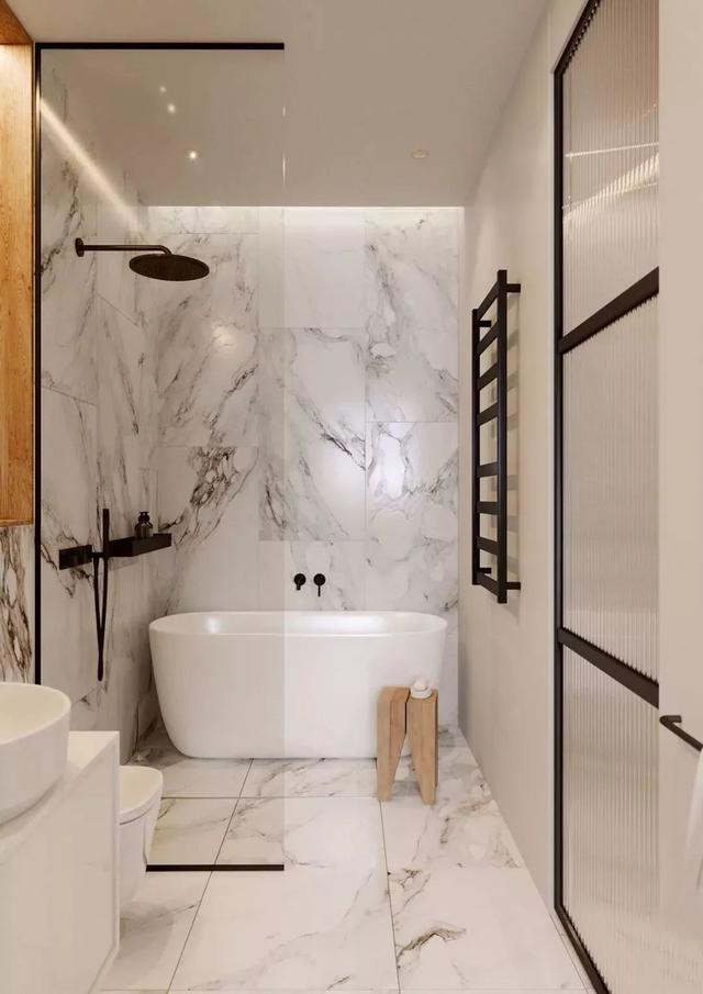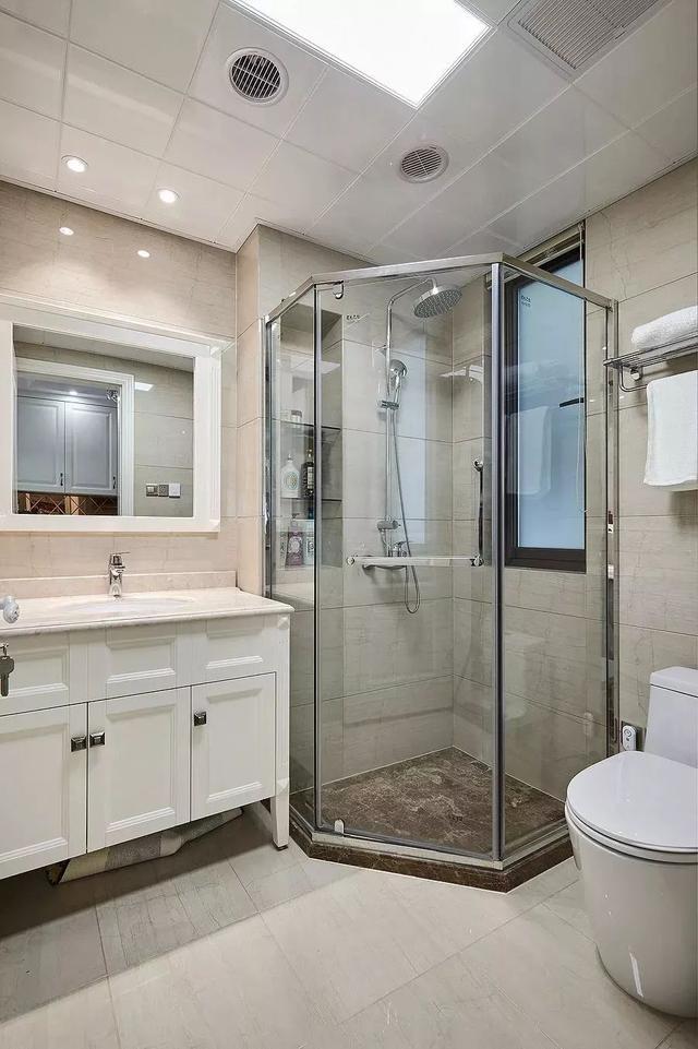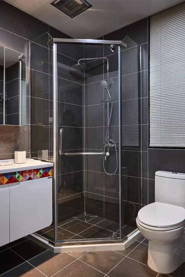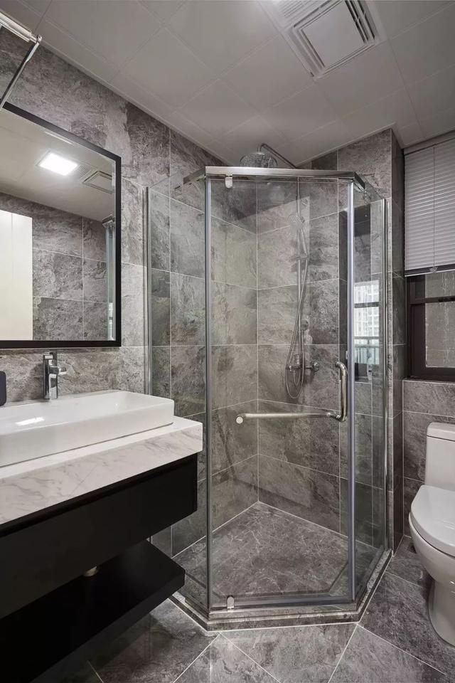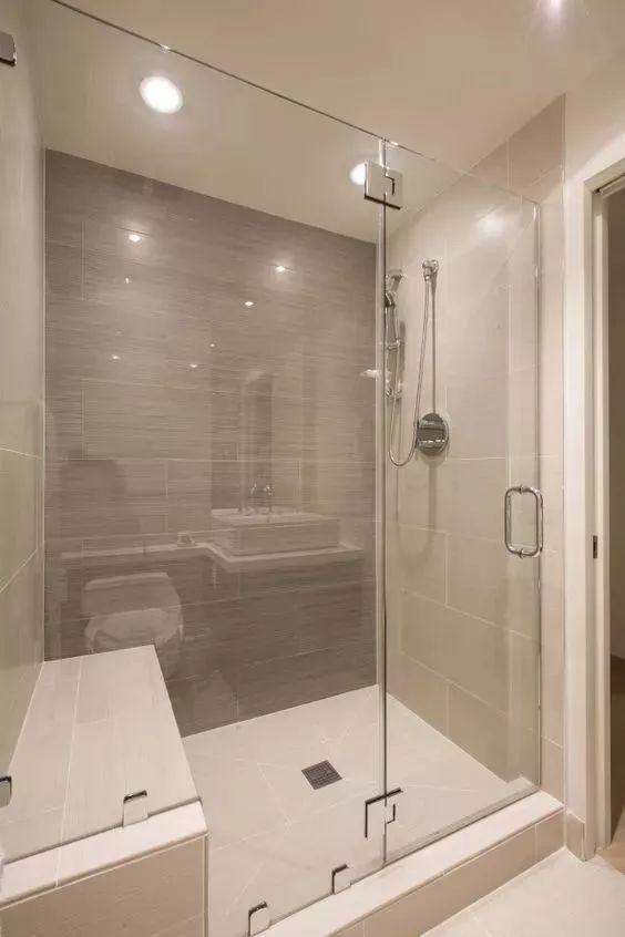 所謂直條形淋浴房,通常都是以一道玻璃推拉門隔斷淋浴區(qū),把衛(wèi)生間里側的空間分割出來,這種形狀的設計通常適合較為狹長的衛(wèi)生間格局,個人覺得這種3面臨墻的淋浴房,是最為舒適的衛(wèi)生間設計。