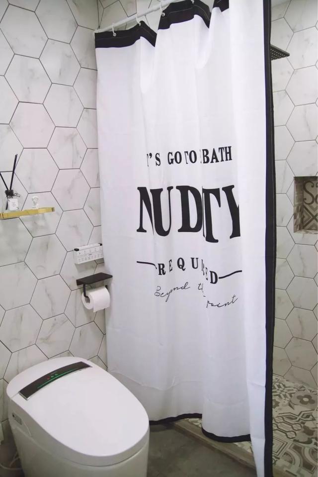 一些比較小的衛(wèi)生間,或則覺得裝玻璃隔斷影響空間整體利用的話,那么就可以考慮換成浴簾作為干濕分離的隔斷,實現(xiàn)更加靈活可變的空間利用。