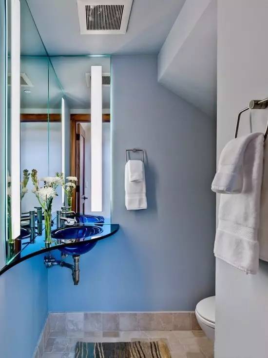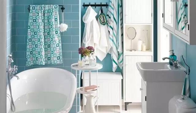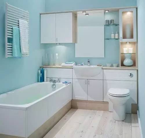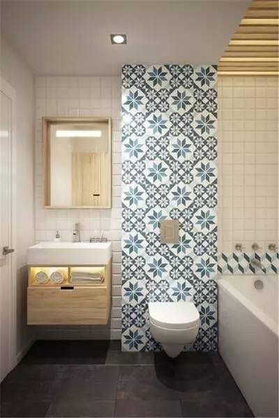 墻排水處理的臺(tái)盆和馬桶就能直接掛在墻上了,省去的管道和水箱的空間還可以用來做收納,放了浴缸也不再是多么困難的一件事了。