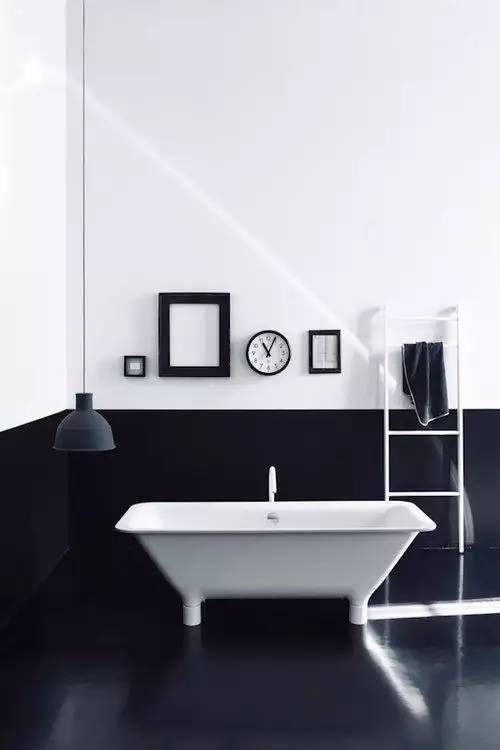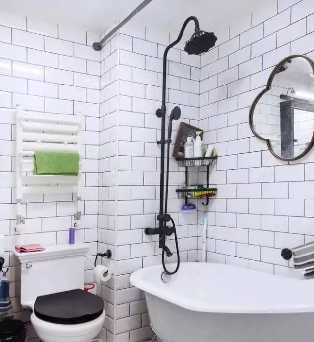 這個(gè)只有1.8㎡的迷你小衛(wèi)生間居然也能放下浴缸。里面就是用的這種人造石浴缸,搭配小白磚和黑色五金件夠潮吧~