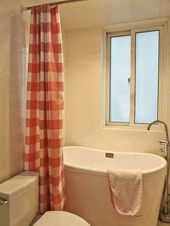 空間有限,縮小潔具間距來省出空間也是一個(gè)好辦法,這個(gè)時(shí)候浴簾的作用就無比重要了,免得洗澡的時(shí)候水濺得到處都是~