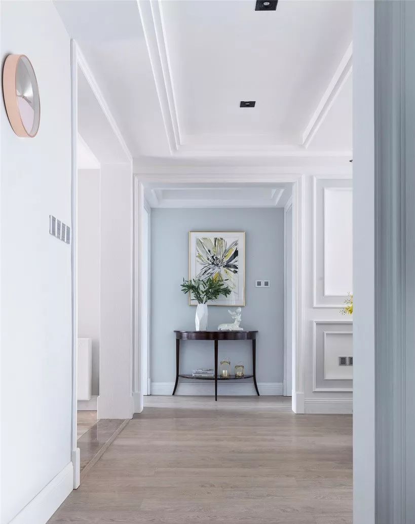 在走廊的盡頭,放上裝飾畫或者桌子等擺件,不僅增強(qiáng)了視覺感,也提升了格調(diào)與品位,讓空間不再那么死板。