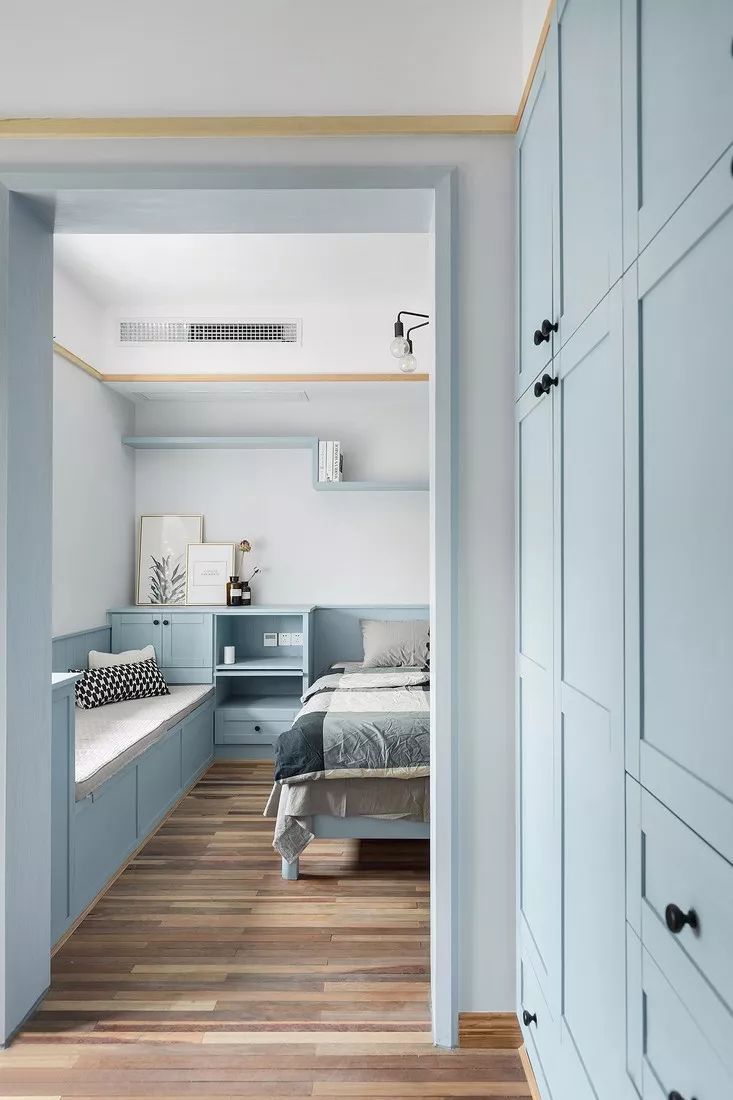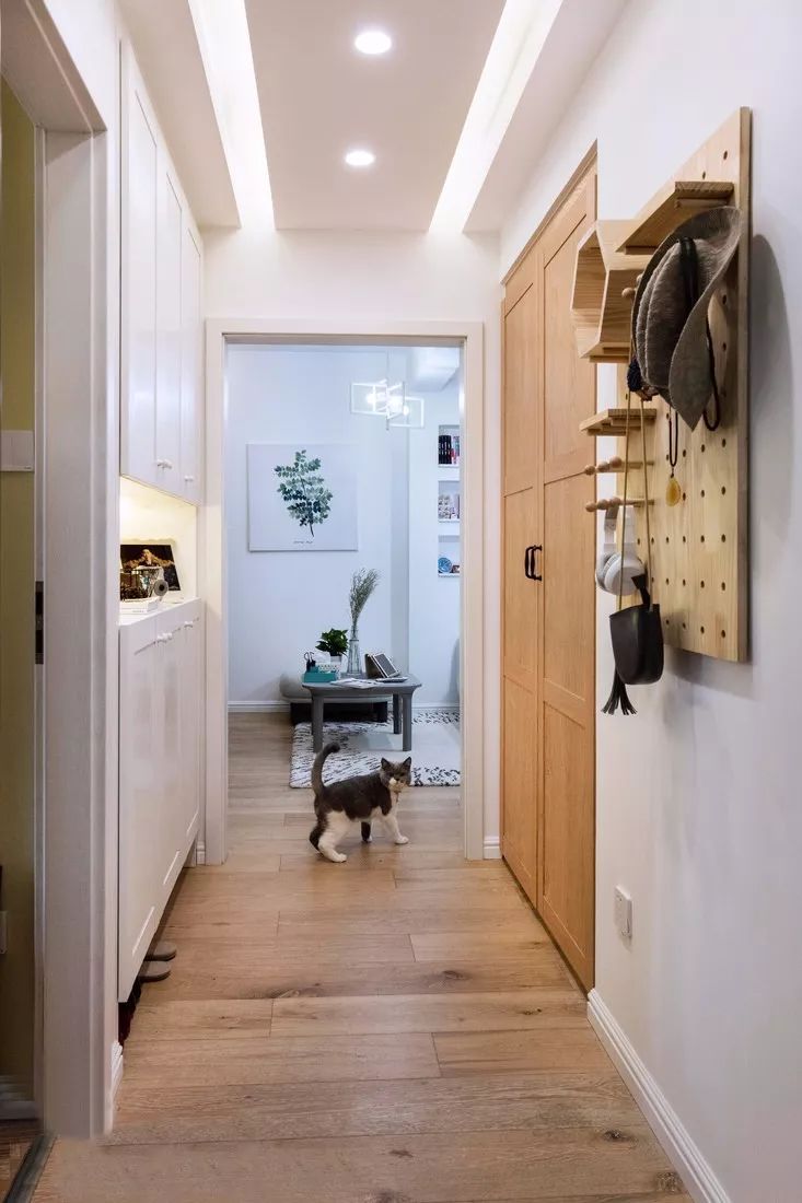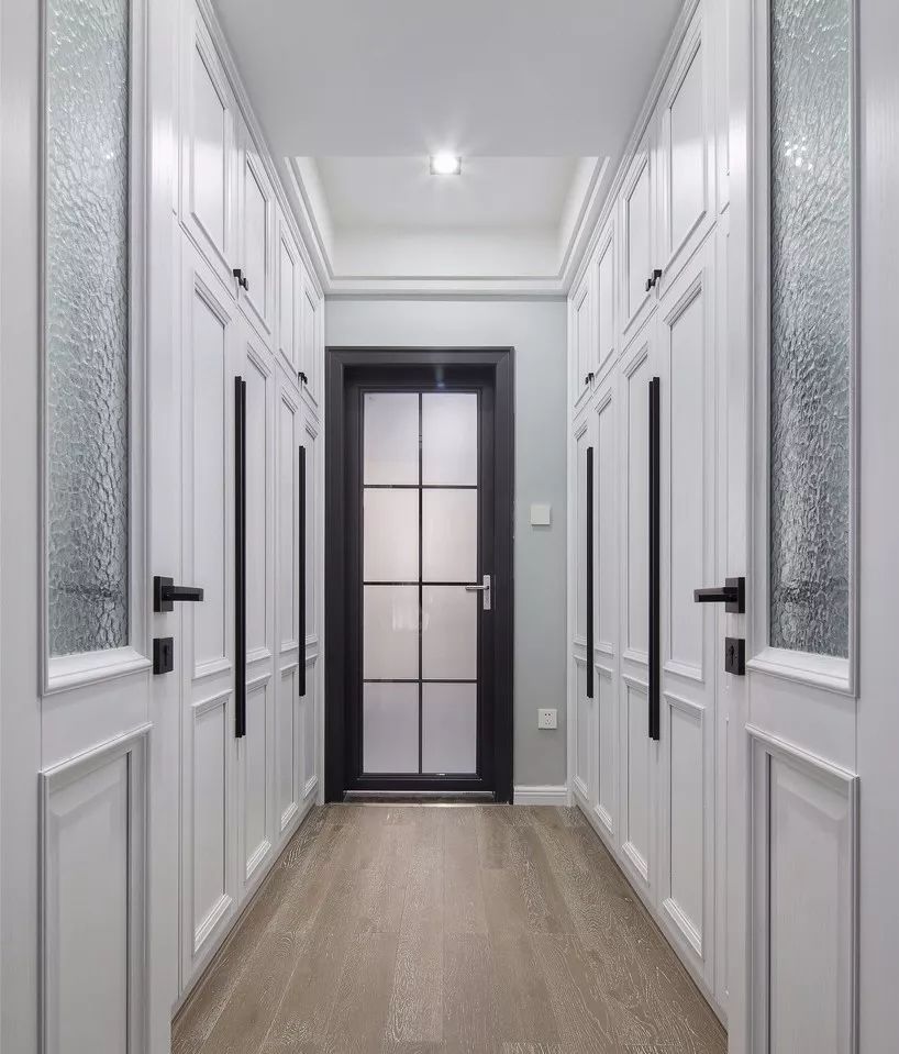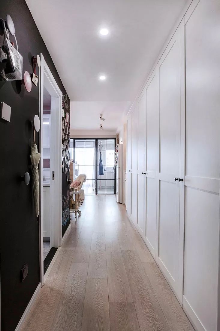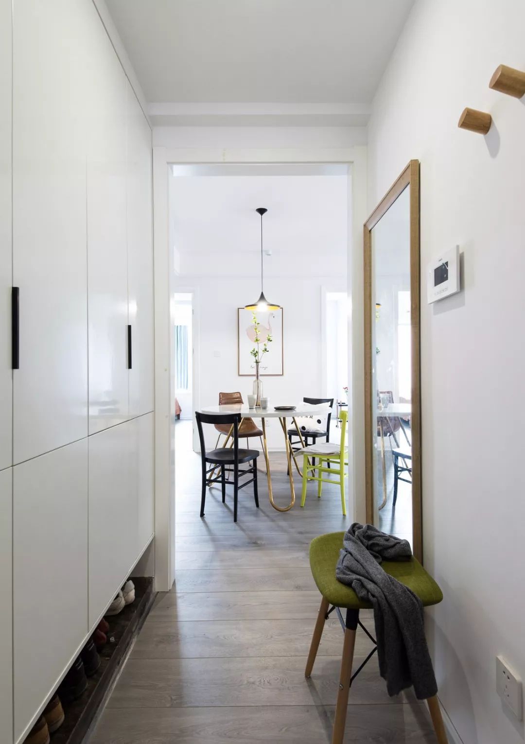 快臨近門廳的走廊打造成衣帽間,考慮到出入時(shí)的便捷,簡單的衣物收納空間,可以椅座的玄關(guān)坐凳,給家人出入帶來許多便利。