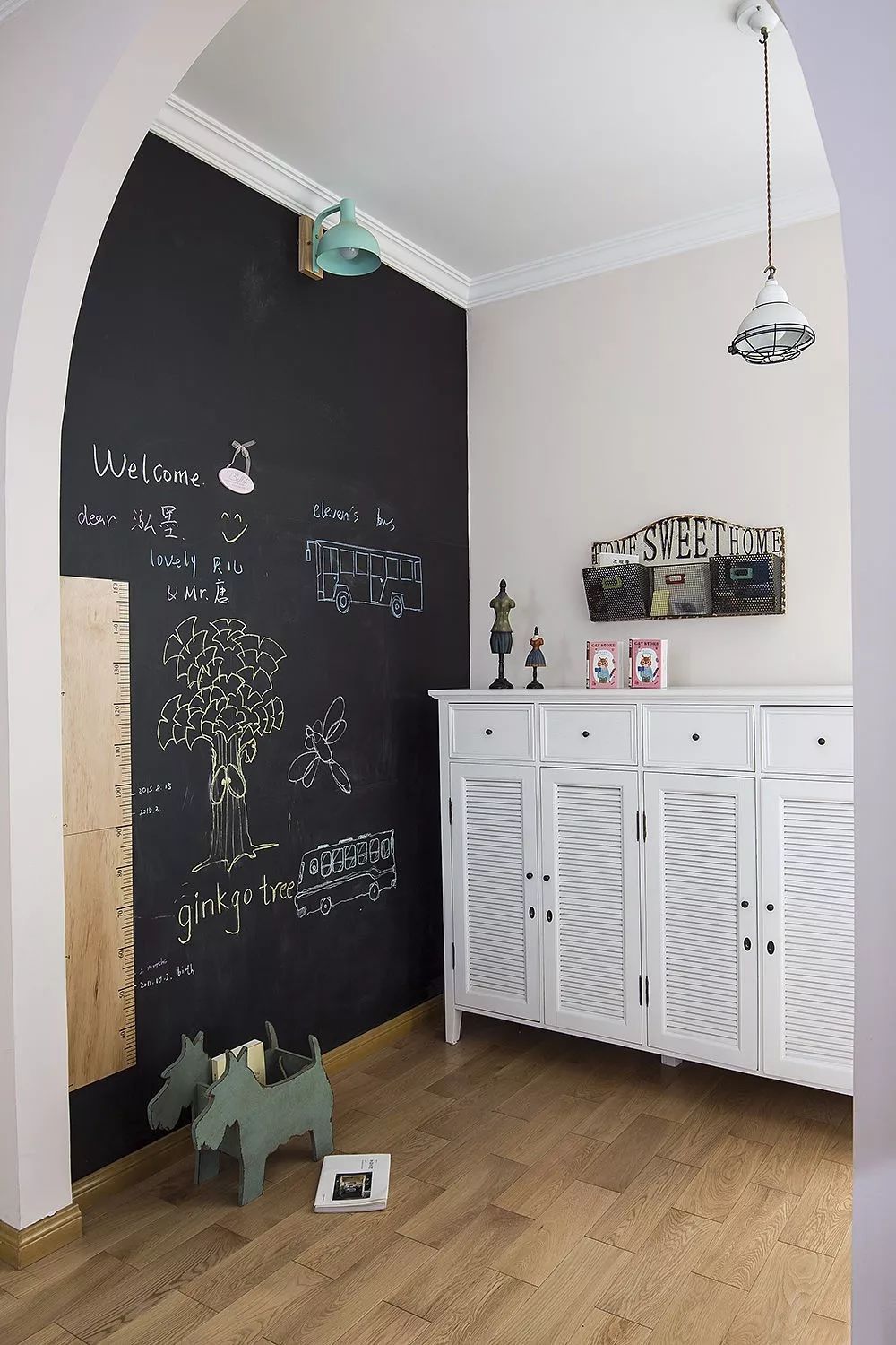 如果家有寶寶,就給他做一面小黑板墻。寫寫畫畫,豐富孩子的生活,也避免了孩子在別的墻面亂寫亂畫。
